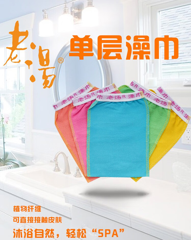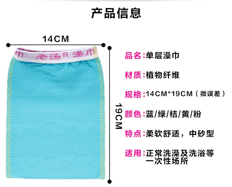 Bath towel, single-layer thin double-sided bath towel, strong mud rub and decontamination bath gloves, creative bath towel, five-piece Laotang single-layer medium-grit bath towel