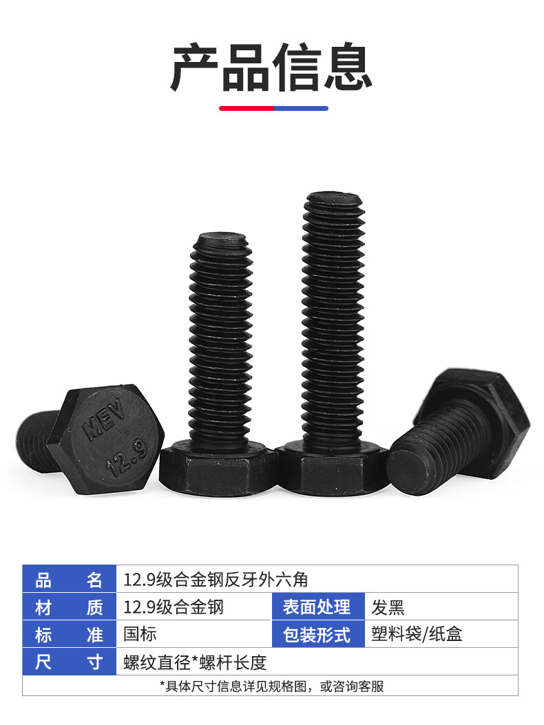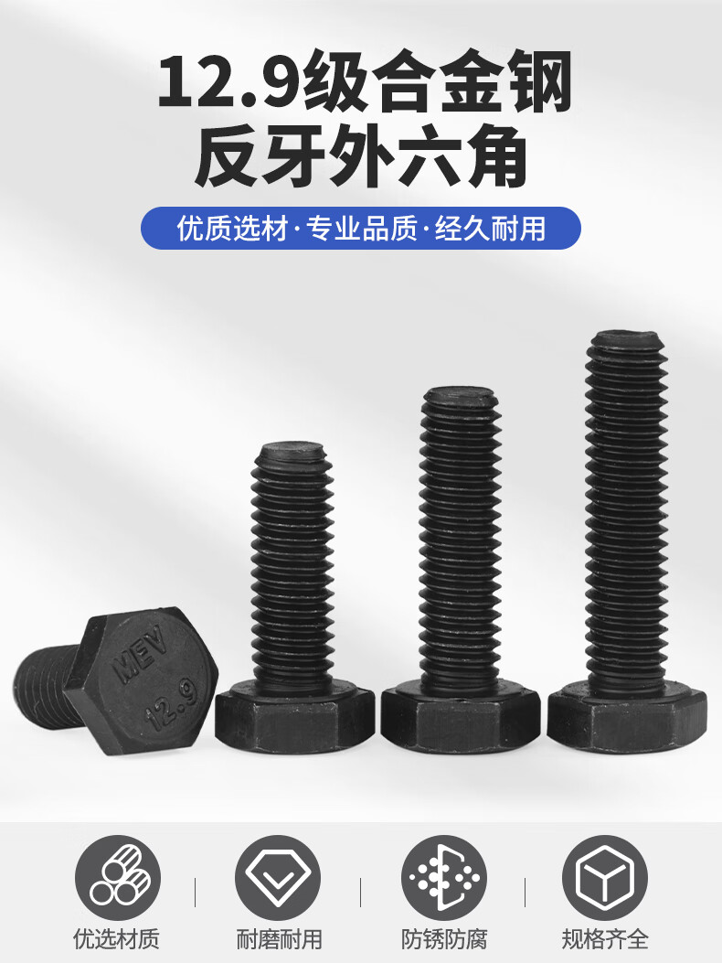 Jinggong 12.9 level anti-thread external hexagonal screw anti-wire anti-buckle left tooth hexagonal head bolt M6M8M10M12M16M20 M8*25-full tooth anti-thread