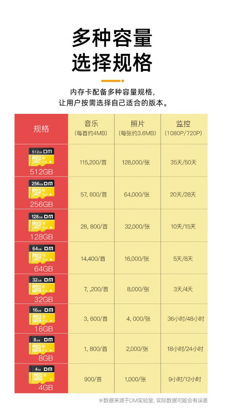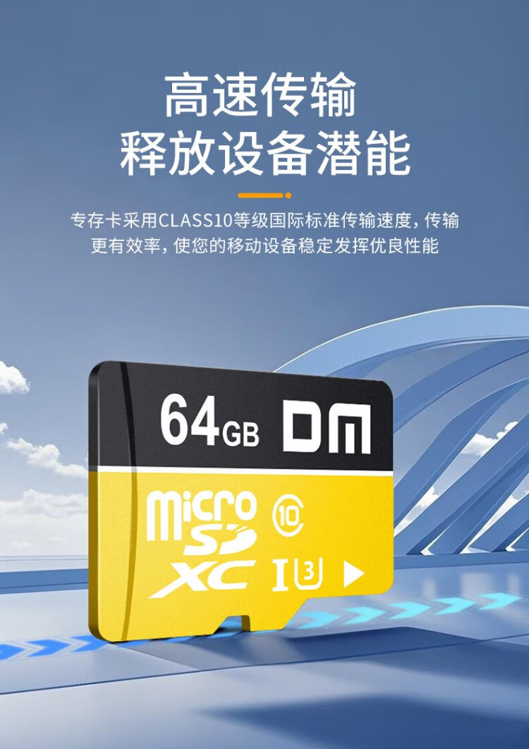 DM Damai 64GB TF (MicroSD) memory card yellow card C10 mobile phone driving recorder surveillance camera dedicated high-speed memory card