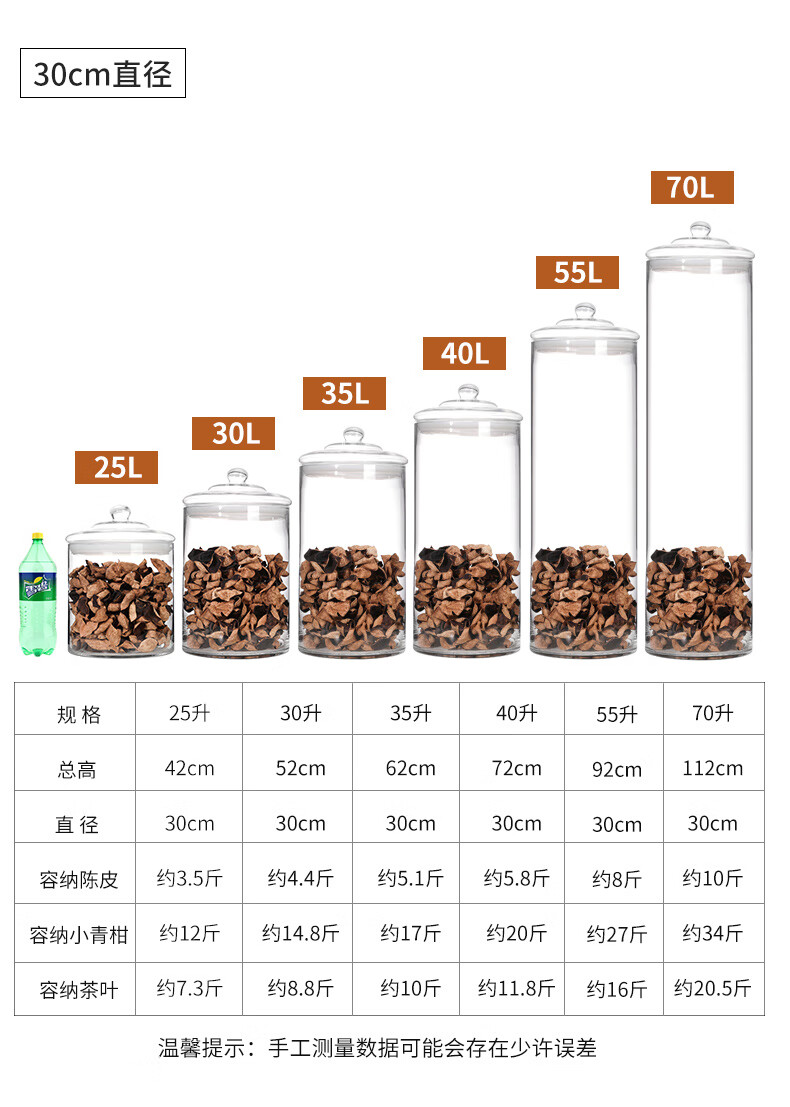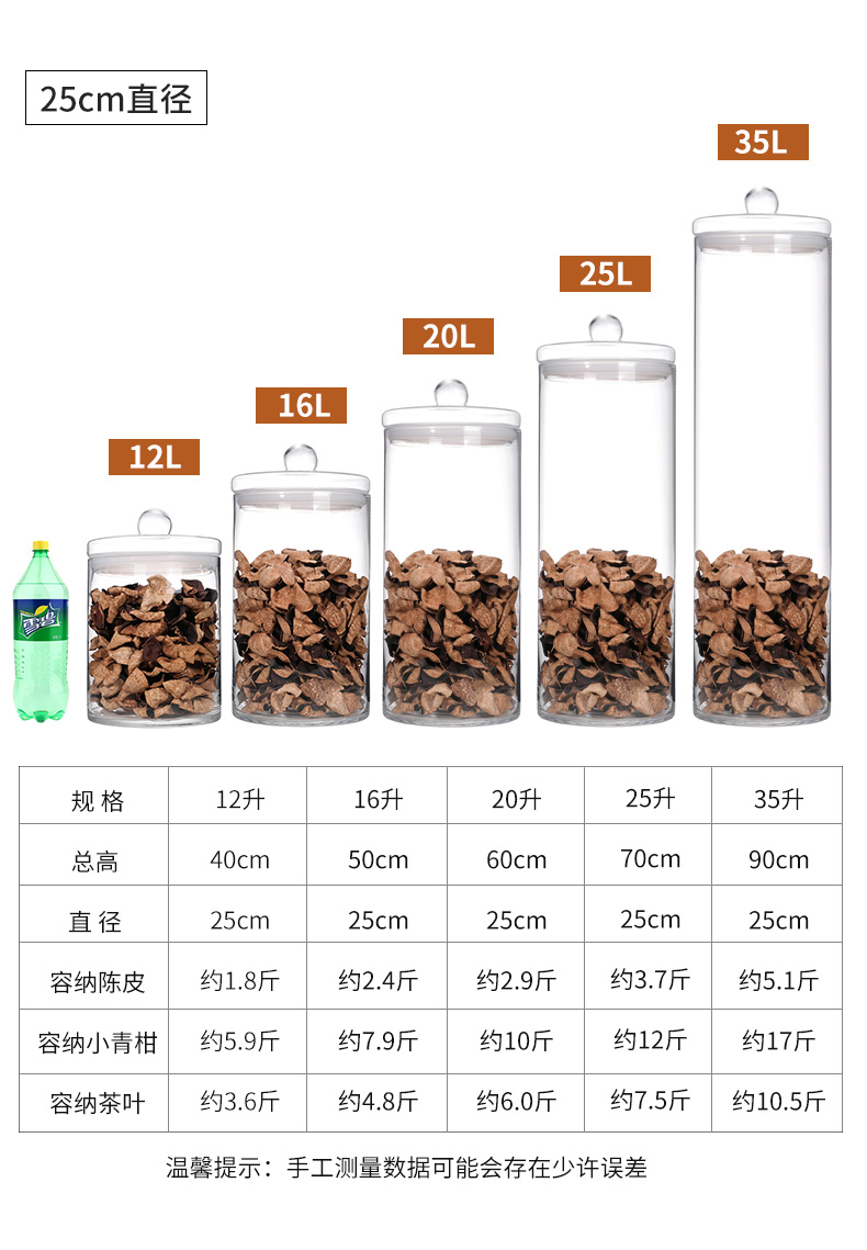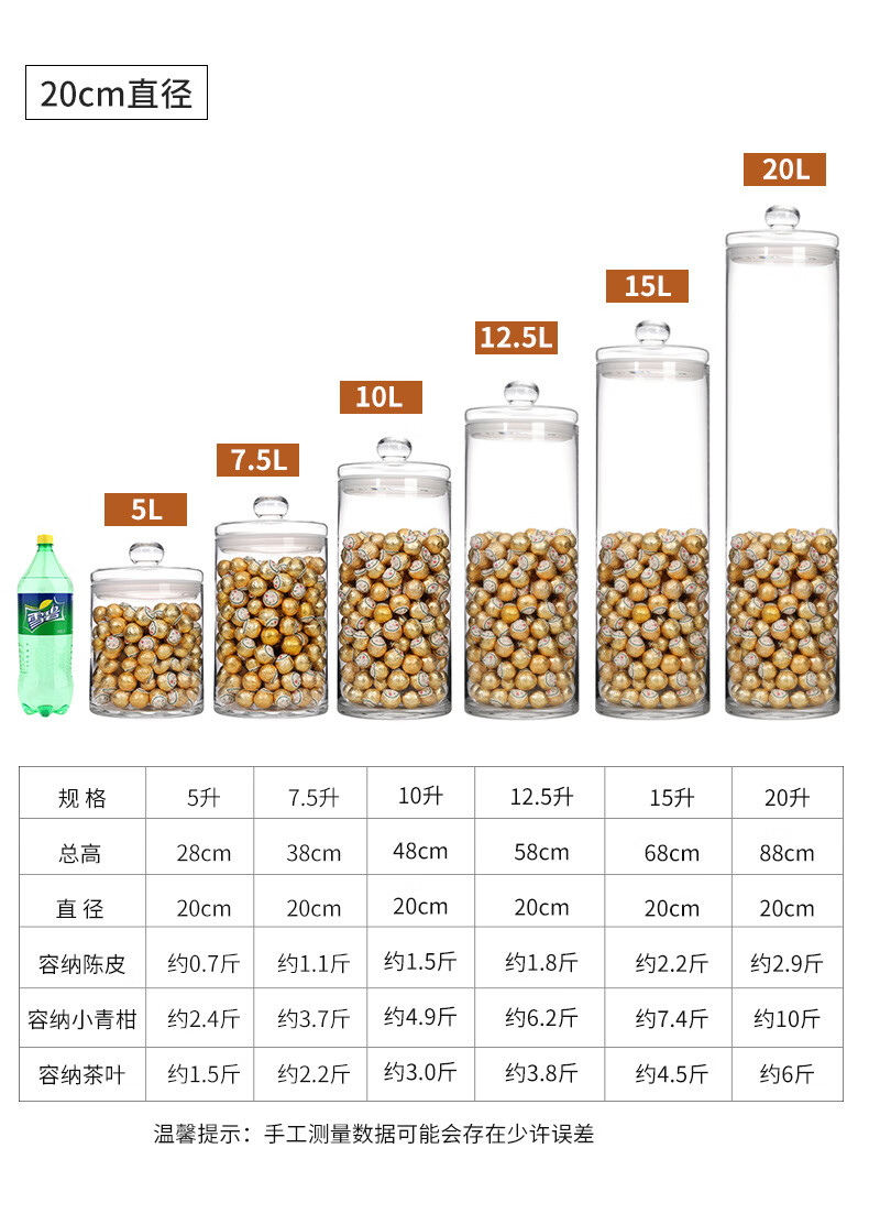 Juhao Four Seasons Food Glass Sealed Jar Tangerine Peel Storage Jar Special Small Green Mandarin Orange Fish Maw Sealed Jar Sealed Jar Tea Display Empty Bottle 7.5 liters Diameter 20cm/High Borosilicate Glass