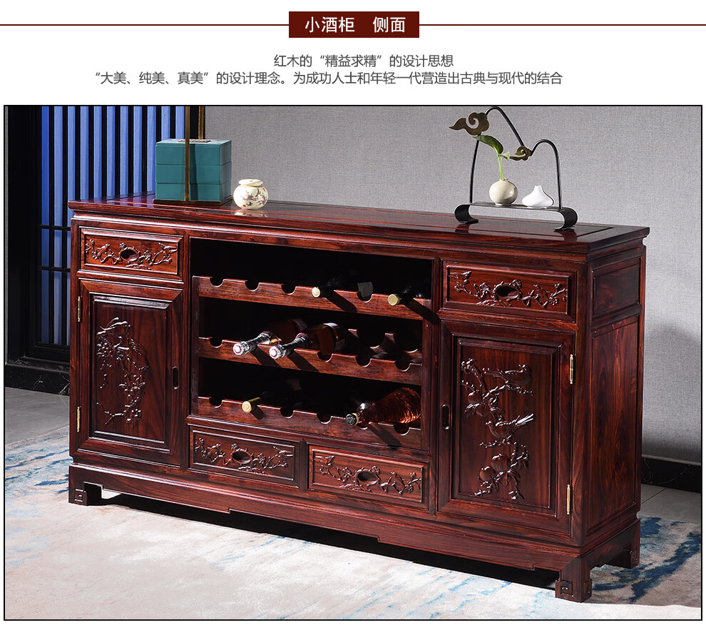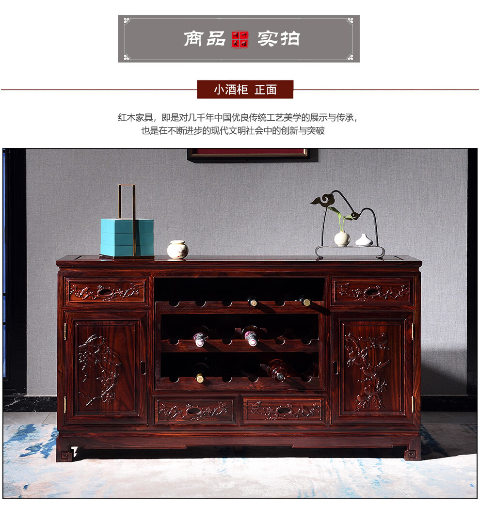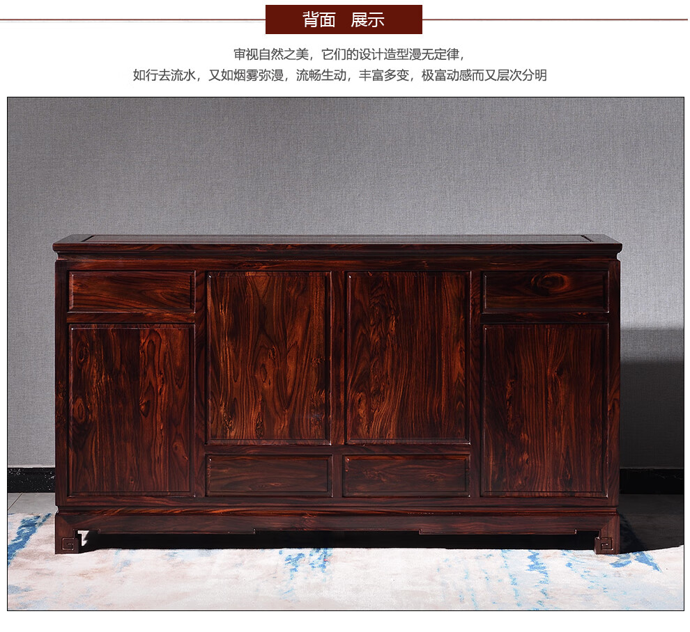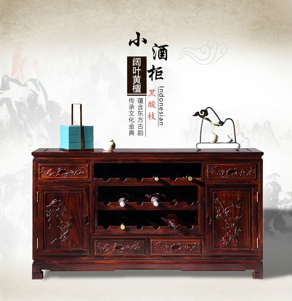 Wooden center mahogany furniture Indonesian black rosewood (scientific name: broad-leaf rosewood) sideboard solid wood wine cabinet 1.4/1.6 meters restaurant storage cabinet Chinese style low cabinet multi-function 138*40*88 low wine cabinet