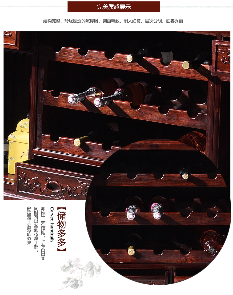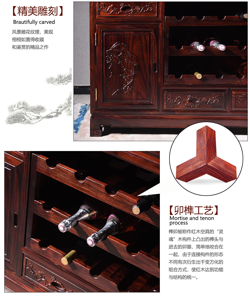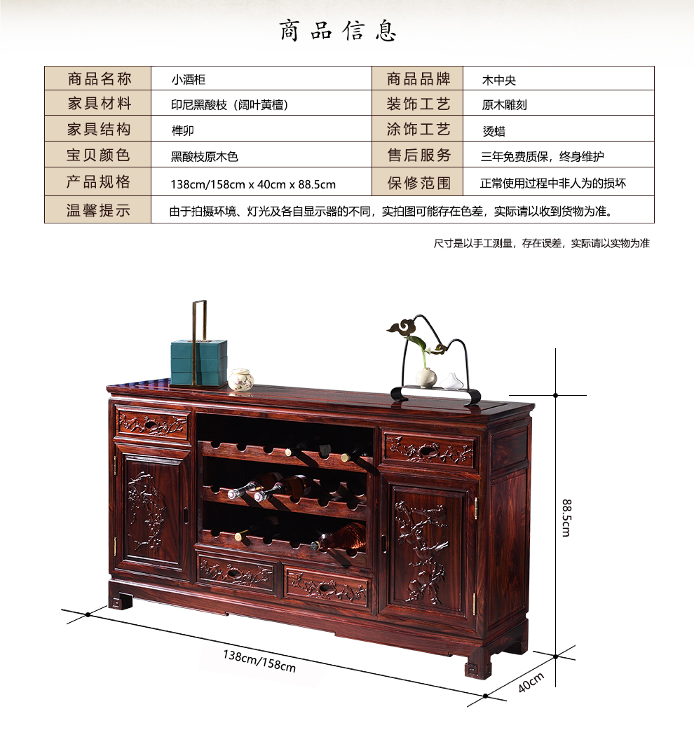 Wooden center mahogany furniture Indonesian black rosewood (scientific name: broad-leaf rosewood) sideboard solid wood wine cabinet 1.4/1.6 meters restaurant storage cabinet Chinese style low cabinet multi-function 138*40*88 low wine cabinet