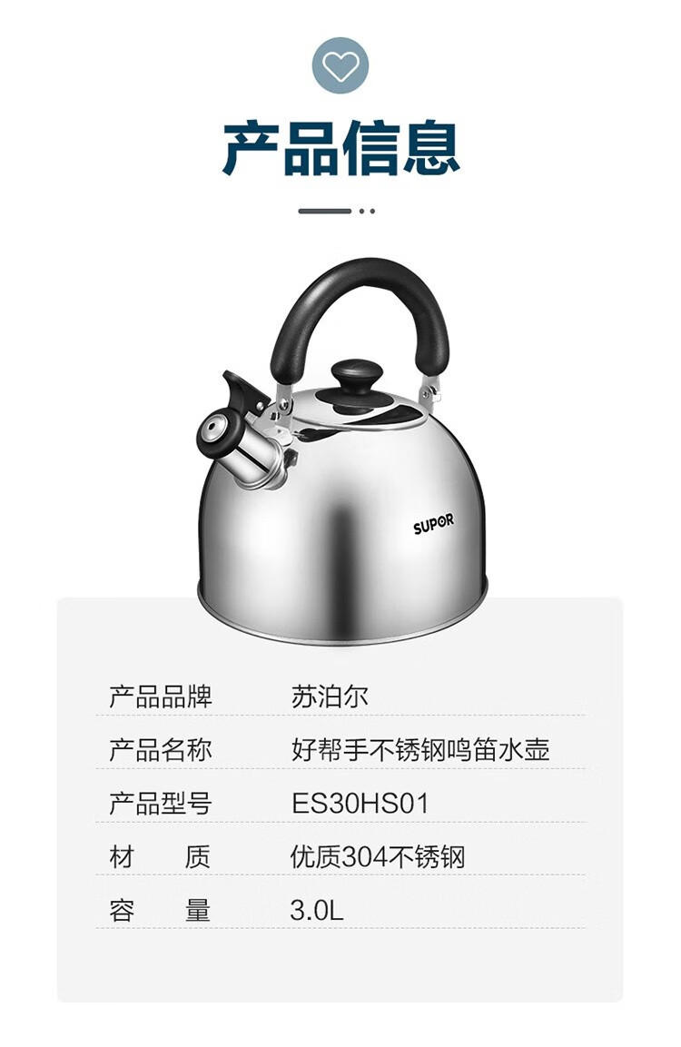SUPOR Fashion Mingyin 304 stainless steel kettle kettle induction cooker gas universal ES30HS01 3L
