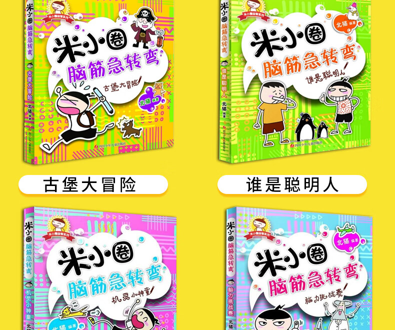 Mi Xiaoquan's Brain Teasers, a full set of 4 volumes, first grade, second grade, third grade, fourth grade, Castle Adventure Brain Rally, the clever little prodigy, who is the smart person? You, Xiao Quan, a fan of Xiao Quan, Xiao Quan's school notes, non-phonetic version, a full set of 4 volumes, Mi Xiaoquan's Brain Teasers,