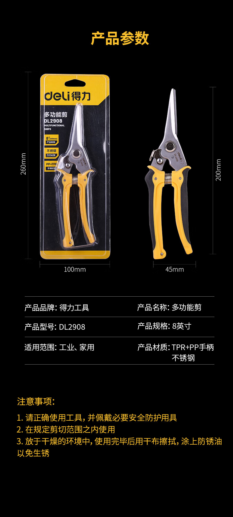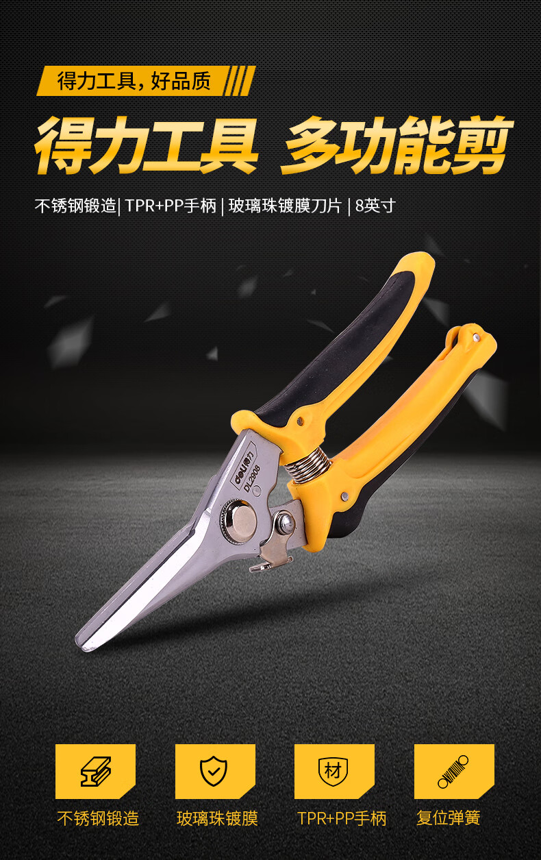 Deli multifunctional scissors electrician scissors household wire cutters wire trough scissors plastic scissors 8 inches DL2908 multifunctional scissors