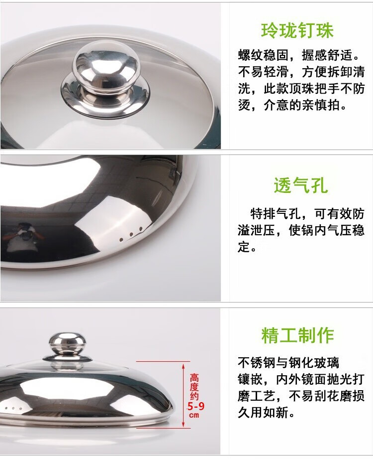 Tuodengfeng anti-fall visual stainless steel combination cover tempered glass cover steamer wok lid stainless steel twist 16cm visible high arch cover