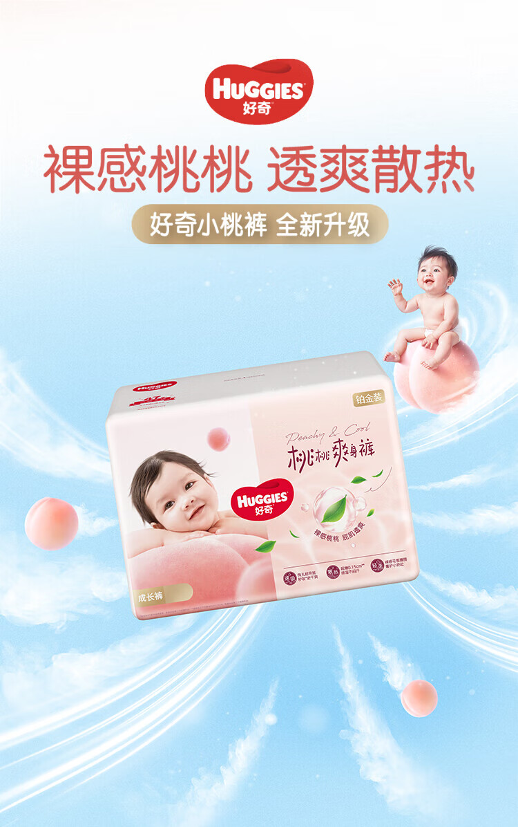 Huggies platinum peach pants growing pants L120 pieces (9-14kg) large diaper pull-up pants, cool and cooling