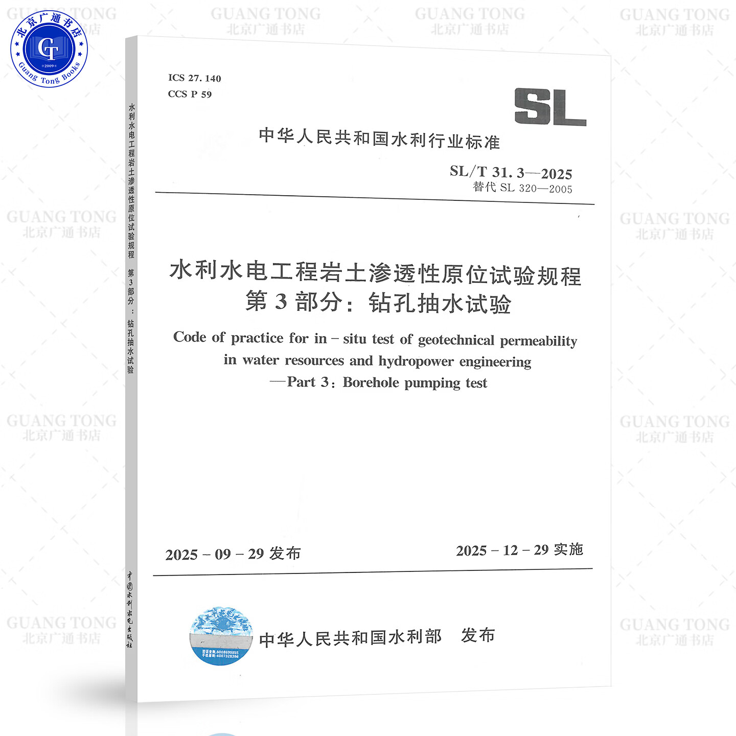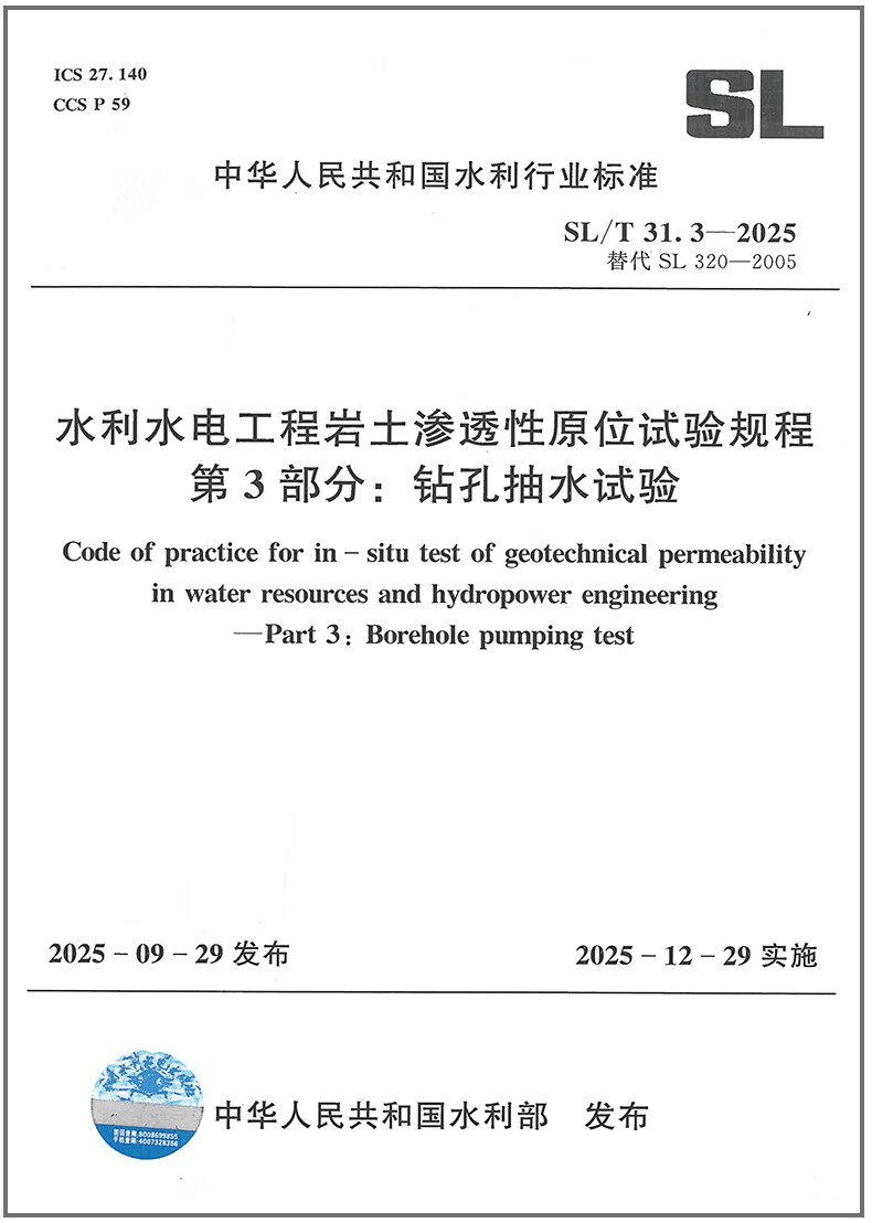 Genuine stock SL/T 31.3-2025 In-situ test procedures for rock and soil permeability in water conservancy and hydropower projects Part 3 Borehole pumping test