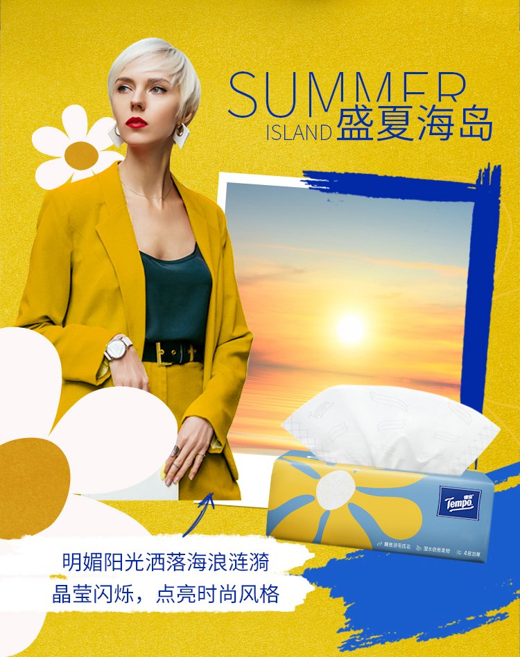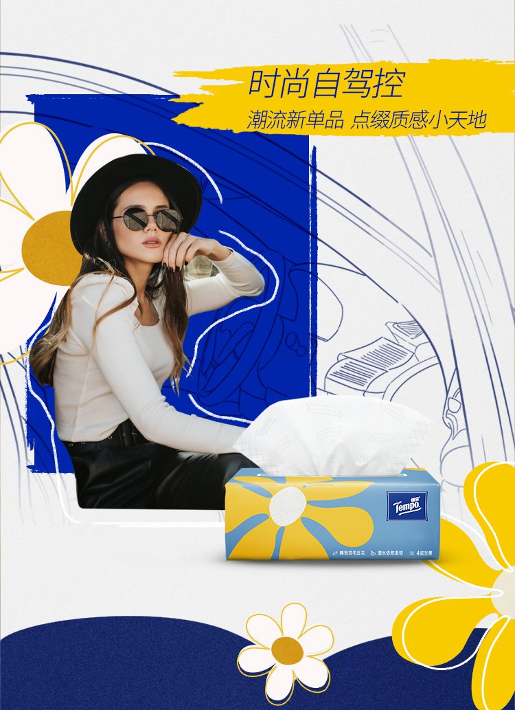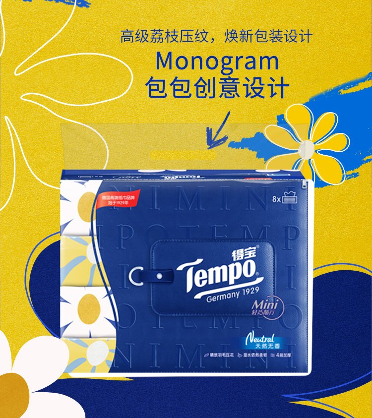 TEMPO Yibo same style tissue paper, Daisy series, 4 layers, 80 sheets*8 pack, not easy to break when wet, napkin, toilet paper