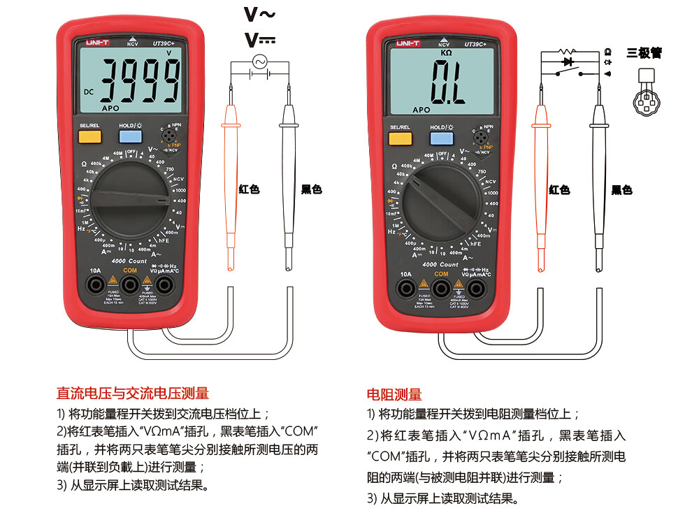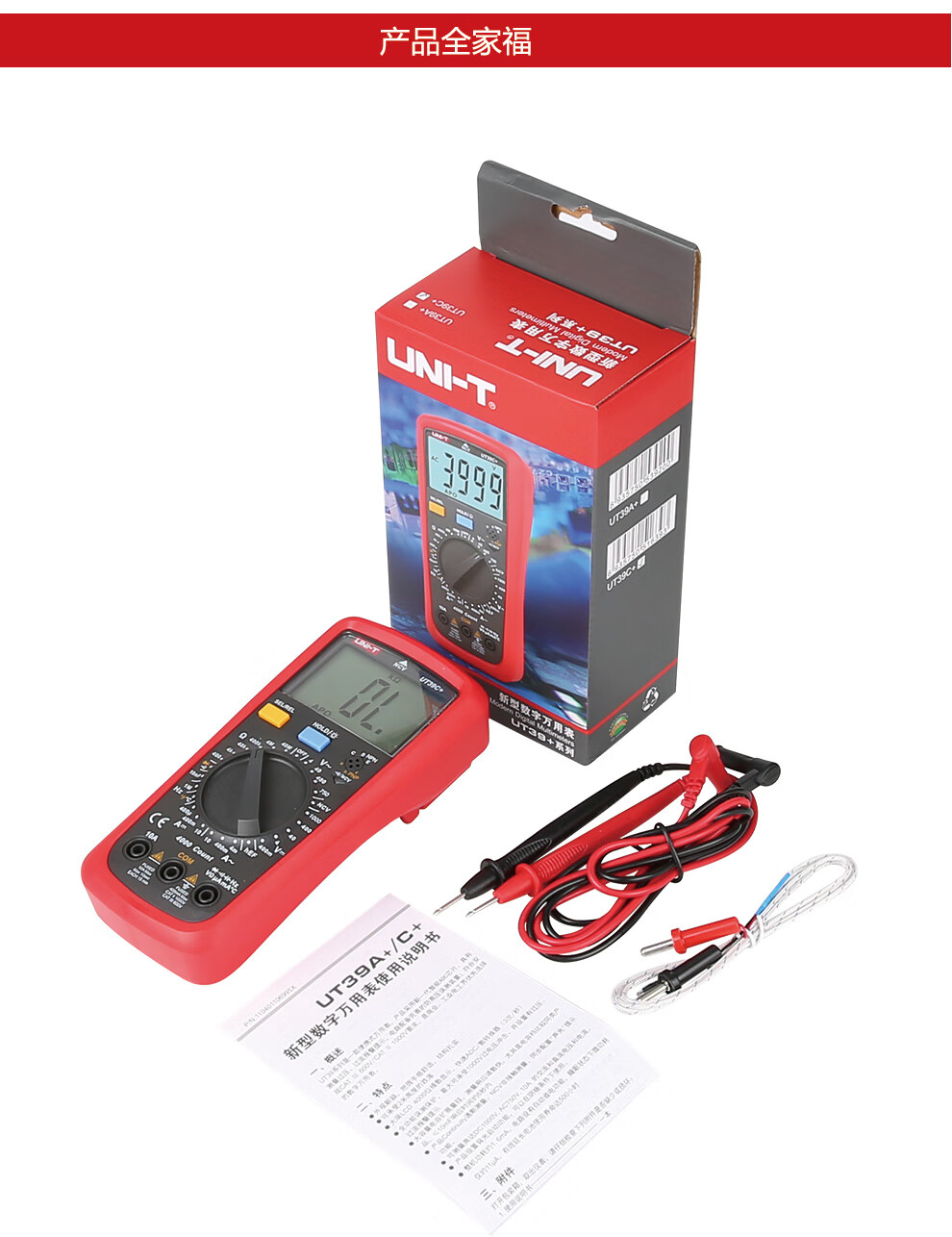 UNI-T digital multimeter high-precision multi-function electrician meter anti-burning anti-mismeasurement voltage, current, resistance and capacitance multimeter UT39A+ comes standard with gift bag