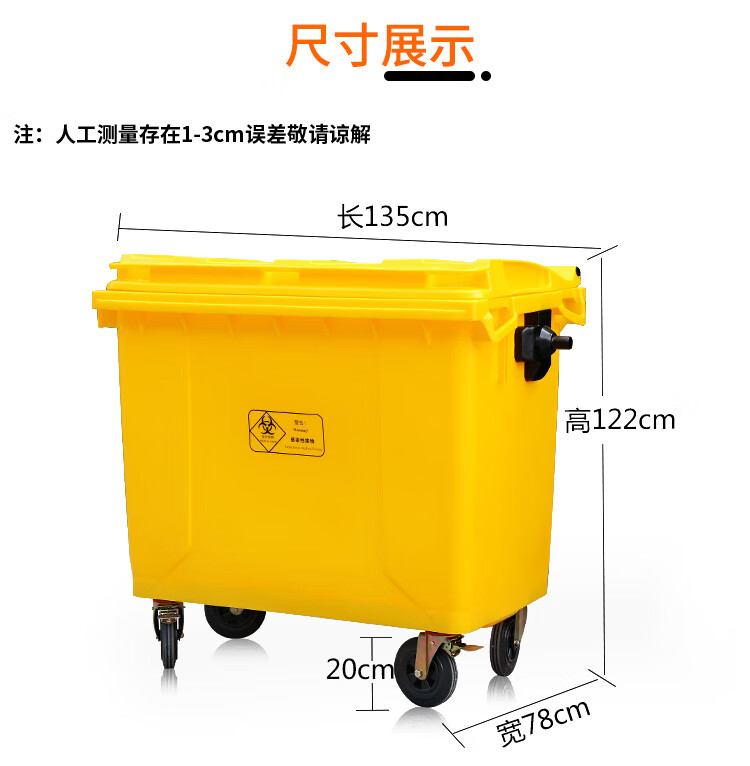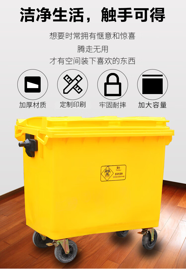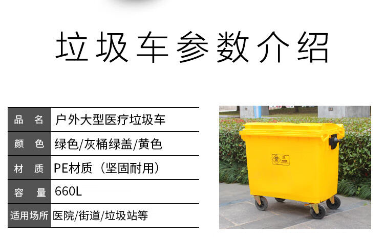 Medical garbage truck transfer truck 660L clinic hospital waste storage garbage truck outdoor cleaning truck 660L yellow