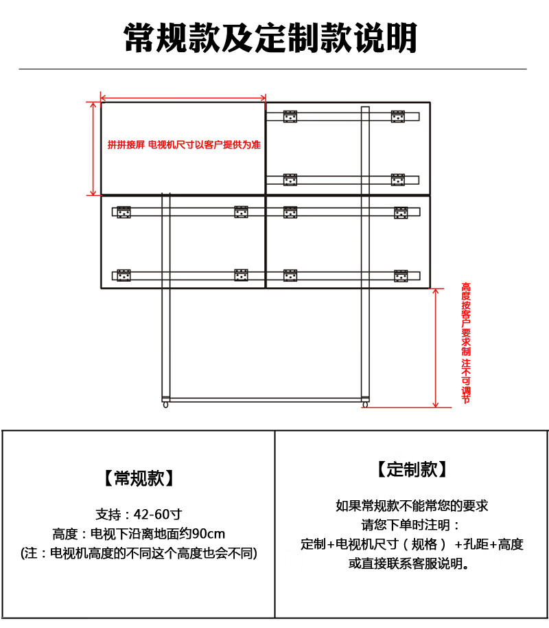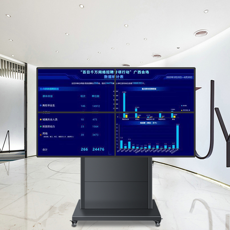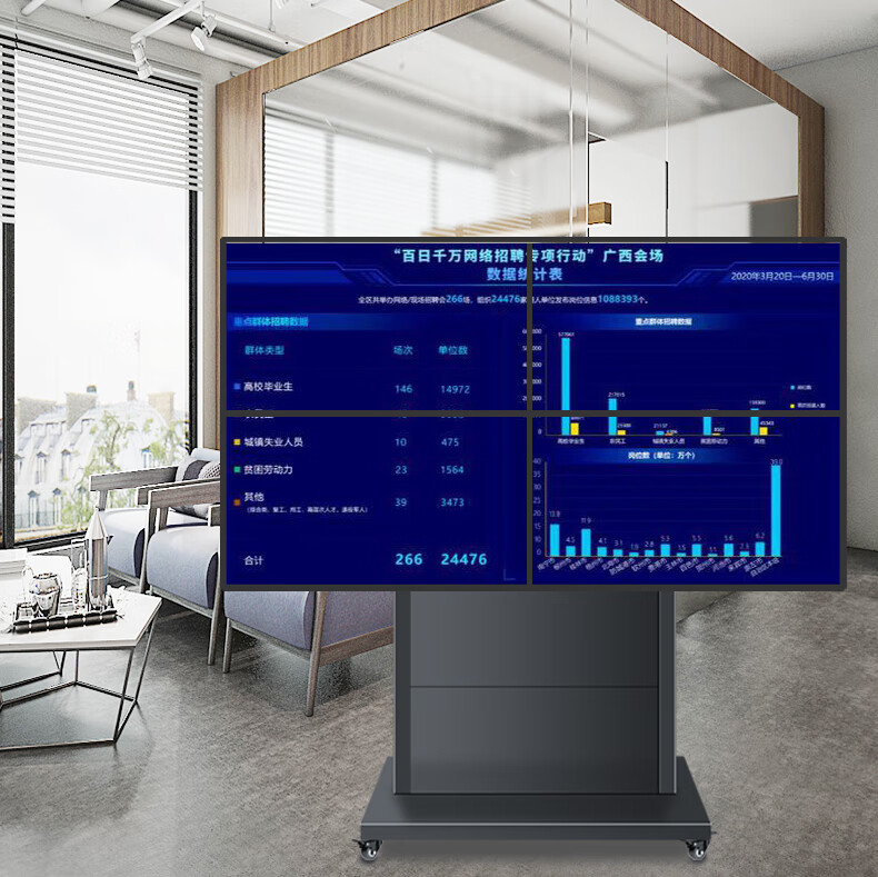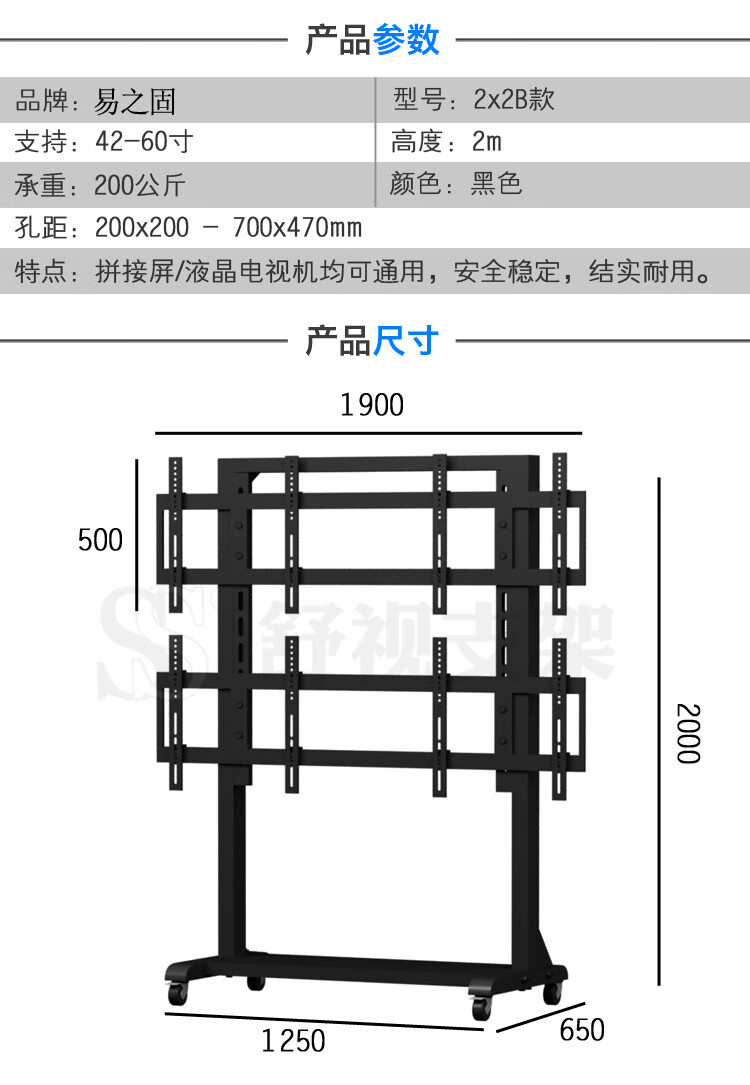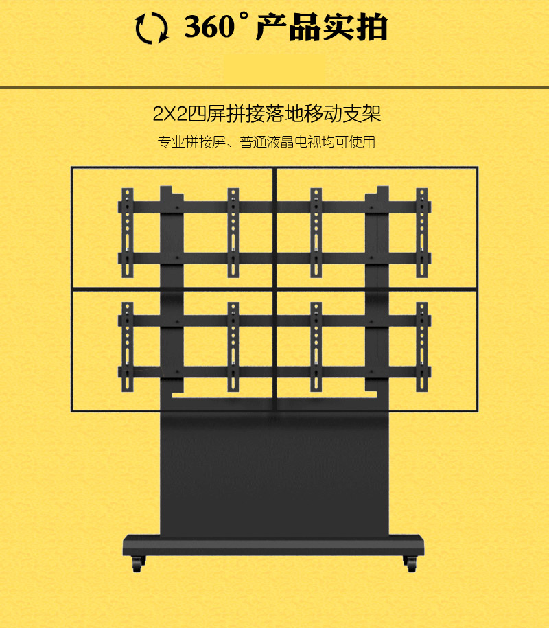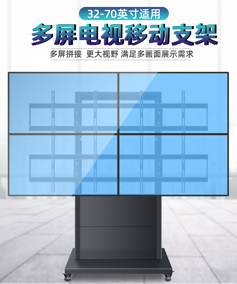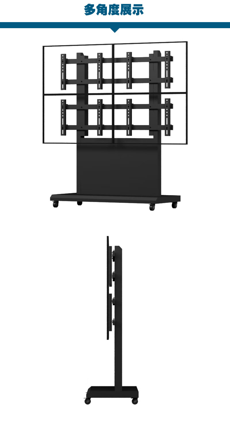Yizhigu four-screen TV stand TV mobile floor stand 40-60 inches universal multi-screen splicing combination commercial display hanger TV cart 2X2 arrangement vertical display stand 40-60 inches universal four-screen splicing combination