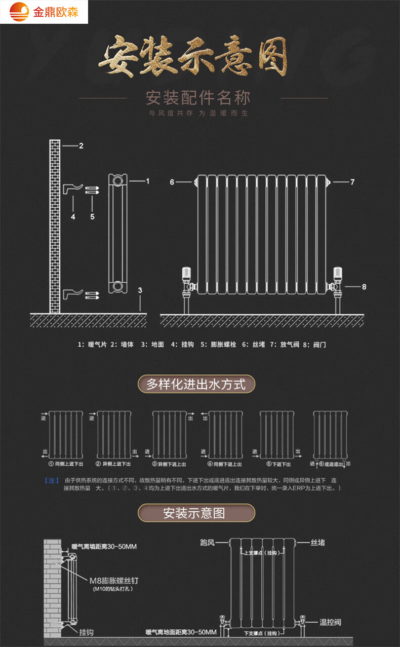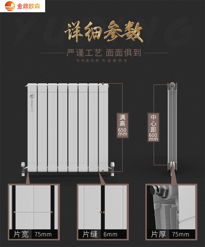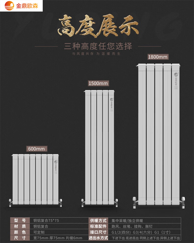Jinding Ousen radiator household water heating copper-aluminum composite radiator central heating self-heating can be customized 75*75 height 600mm