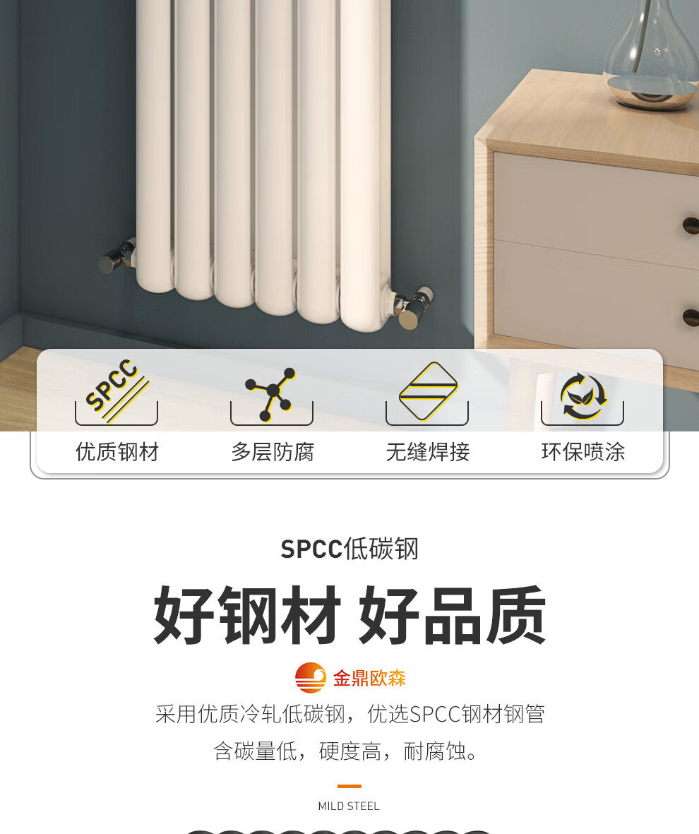 Jinding Ousen radiator household water heating steel radiator centralized self-heating heating bedroom living room kitchen wall-mounted 600mm high
