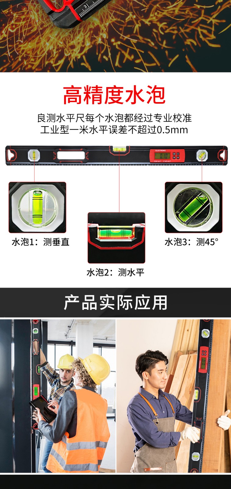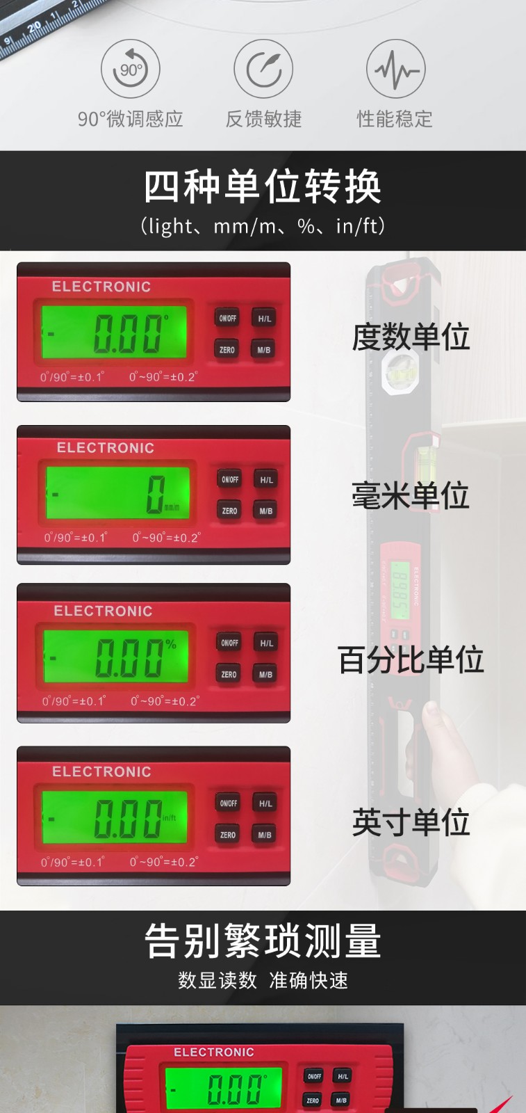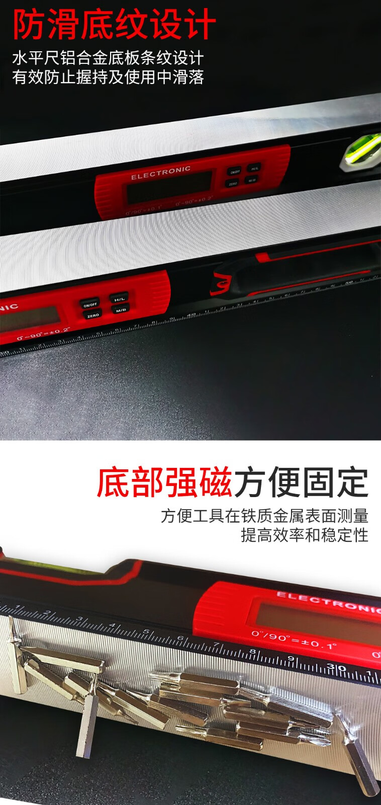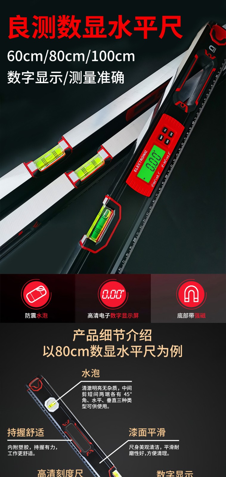 Liangcei high-precision electronic digital display spirit level aluminum alloy balance angle ruler measuring instrument strong magnetic decoration measurement 60cm export-grade high-precision spirit level (digital display version)