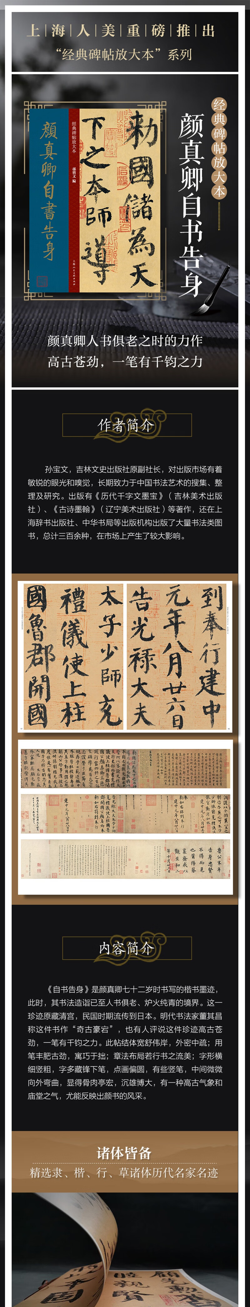 High-definition large format, Yan Zhenqing's self-report, enlarged version of classic inscriptions, calligraphy and calligraphy in Yan's regular script, enlarged color version of original inscriptions, simplified marginalia