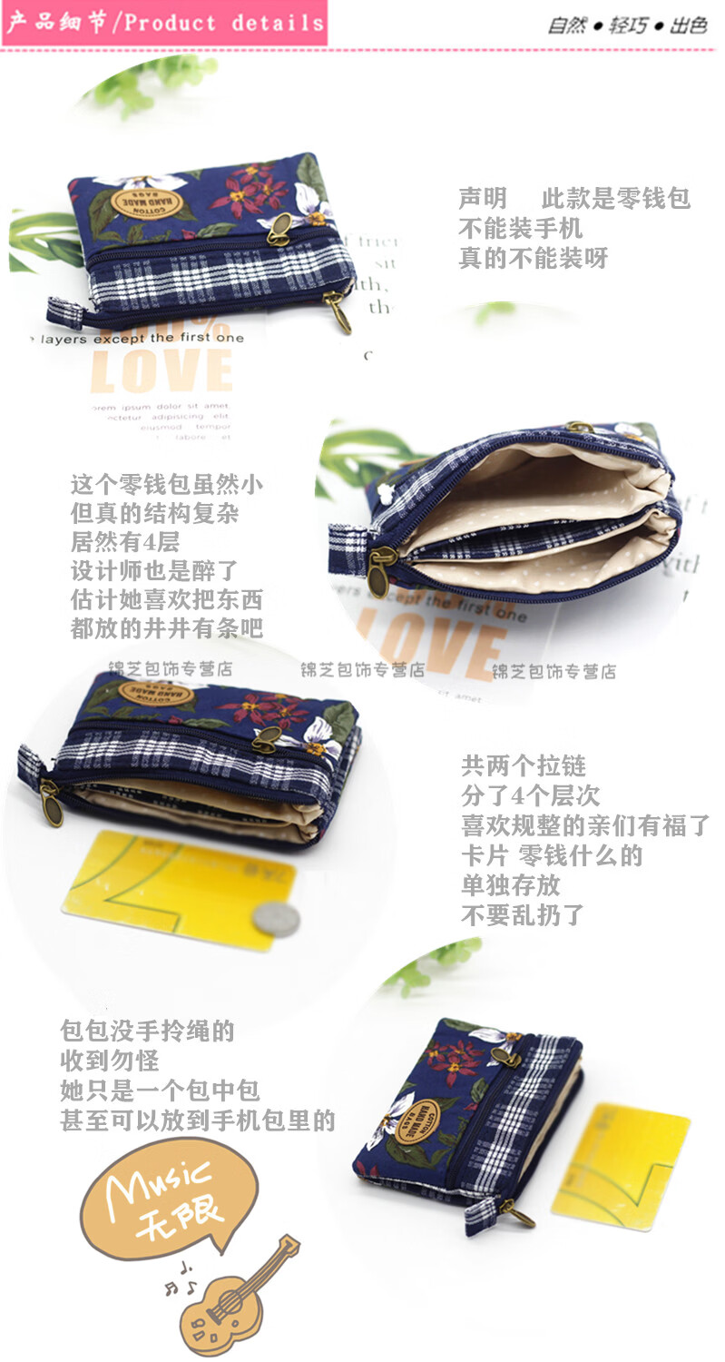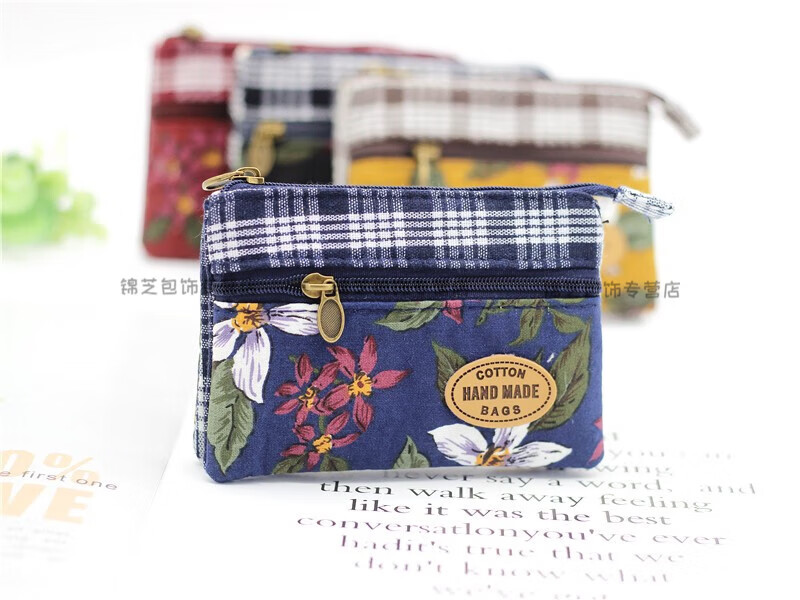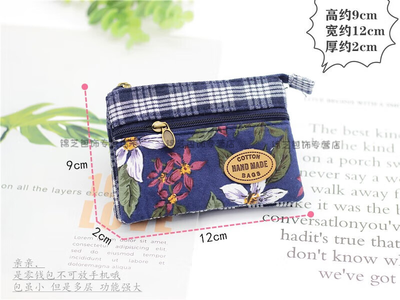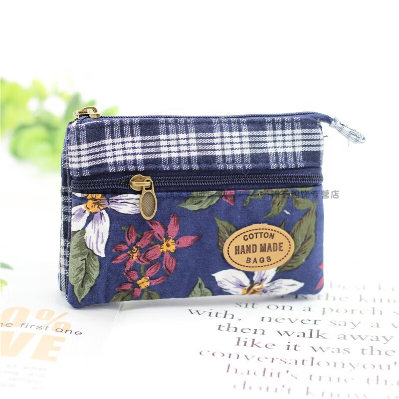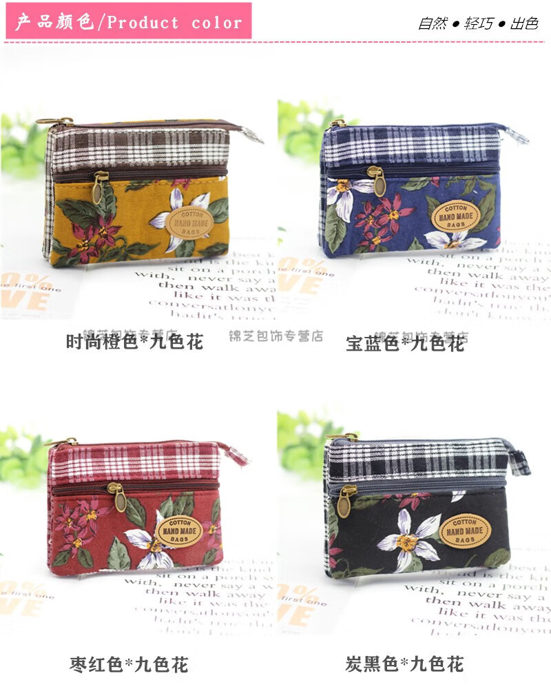 Kingtrip Pastoral Multi-layer Cotton Coin Purse Elderly Grocery Purse 4-layer Zipper Coin Bag Simple Ladies Short Purse Maroon Nine-Colored Flower