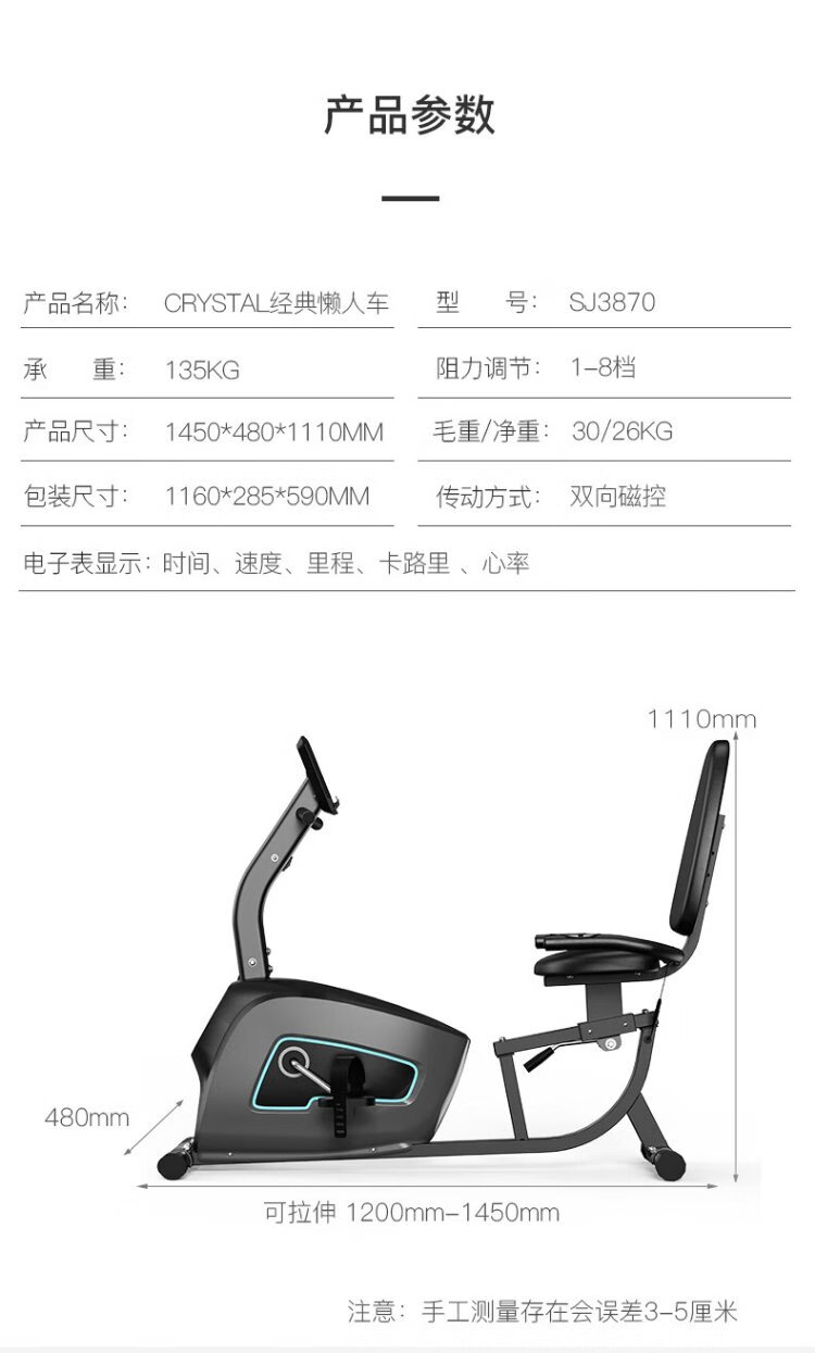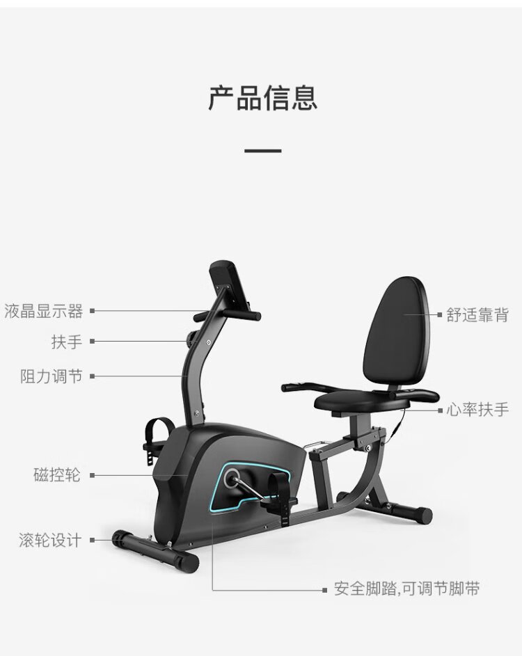 CRYSTAL Rehabilitation bicycle for the elderly, household magnetically controlled silent horizontal exercise bike, upper and lower limb rehabilitation training fitness equipment, luxury model/magnetic controlled rheostat/heart rate monitoring