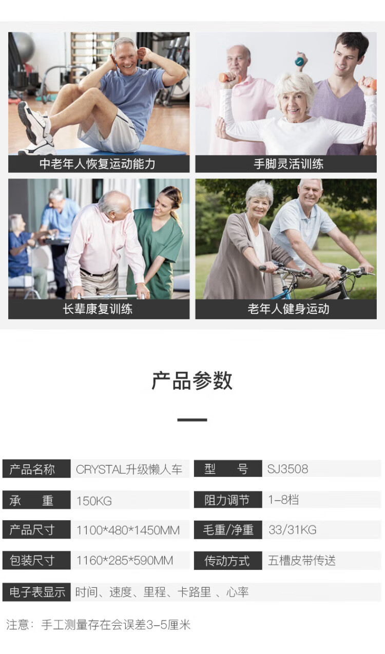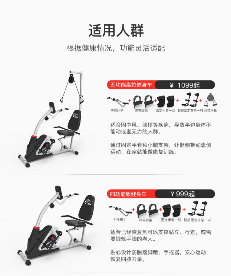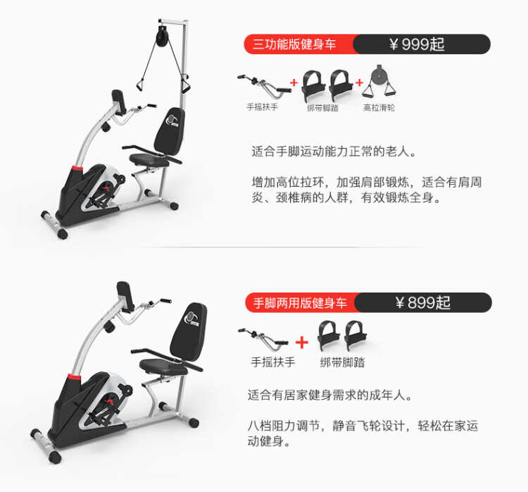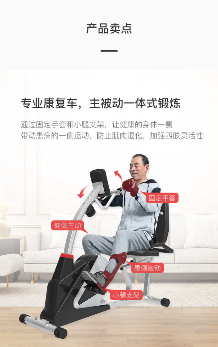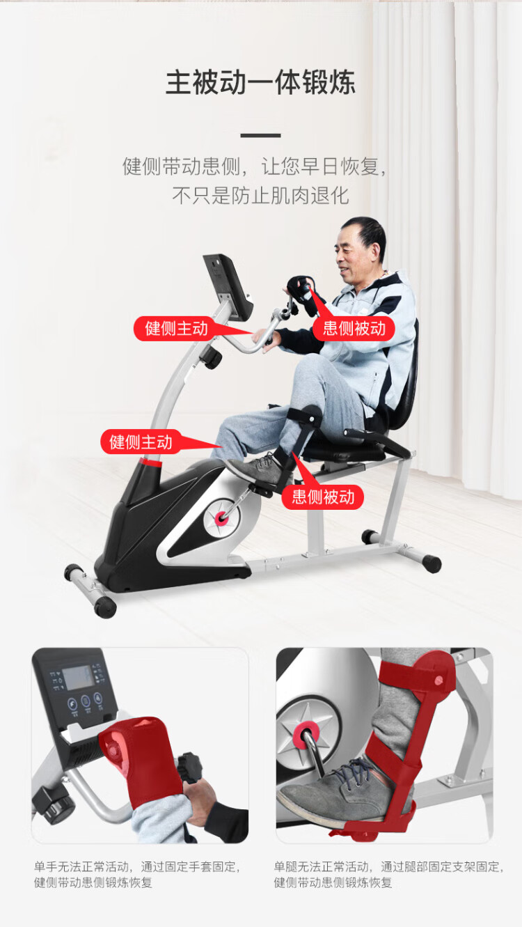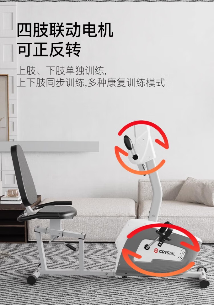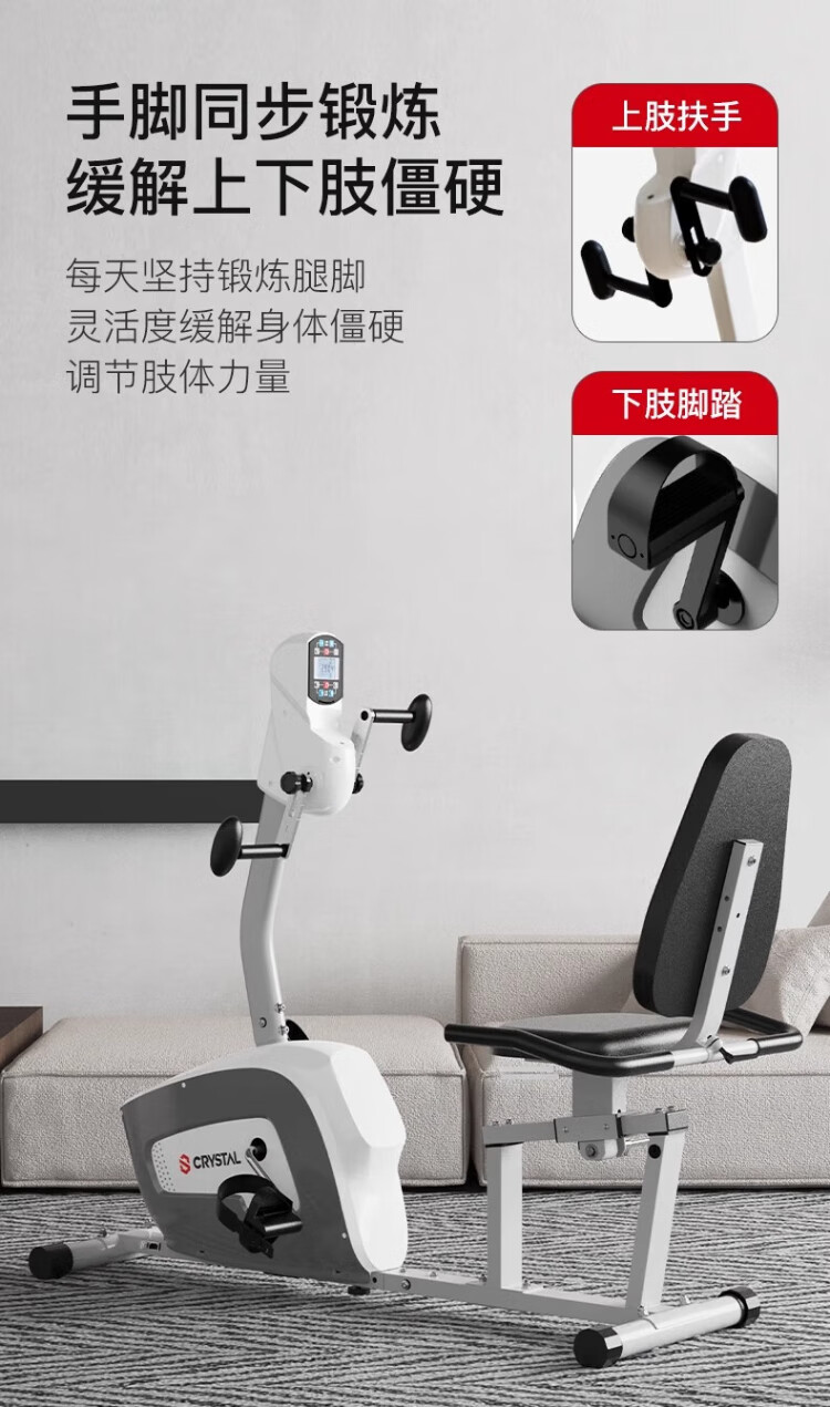CRYSTAL horizontal exercise bike for middle-aged and elderly people, rehabilitation training bicycle, training equipment for paralyzed patients with cerebral infarction, deluxe version, both hands and feet