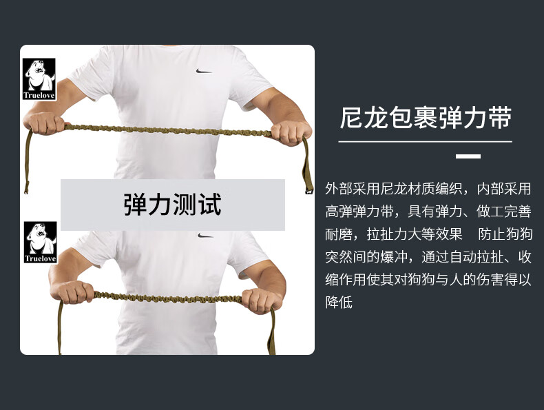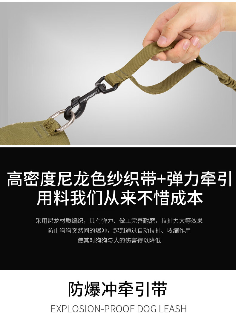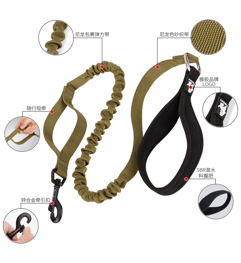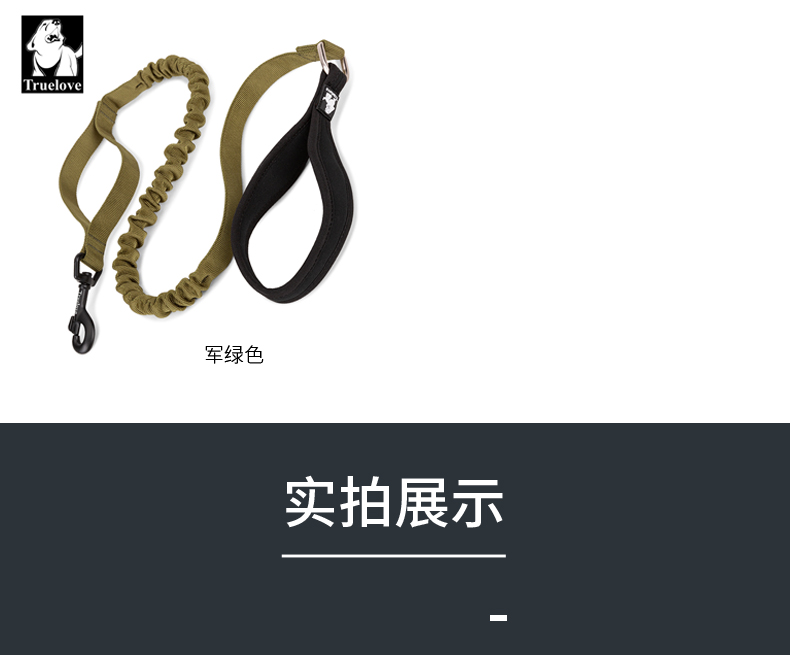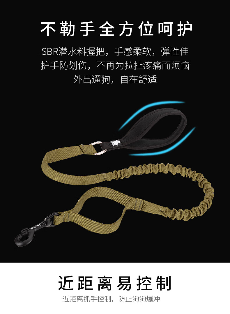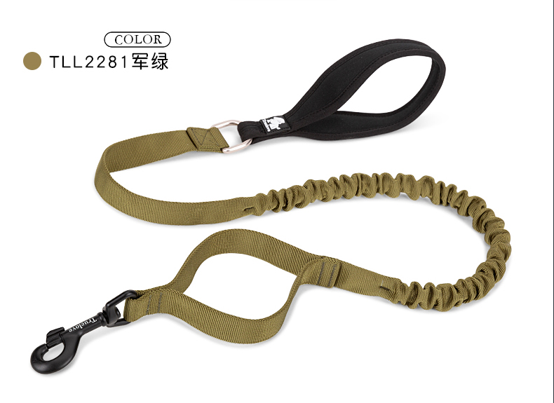 TRUELOVE dog leash explosion-proof Okinawa dog chain dog walking golden retriever small, medium and large dog pet supplies buffer elastic rope military green S (width 1.5cm, total length 120-160cm)
