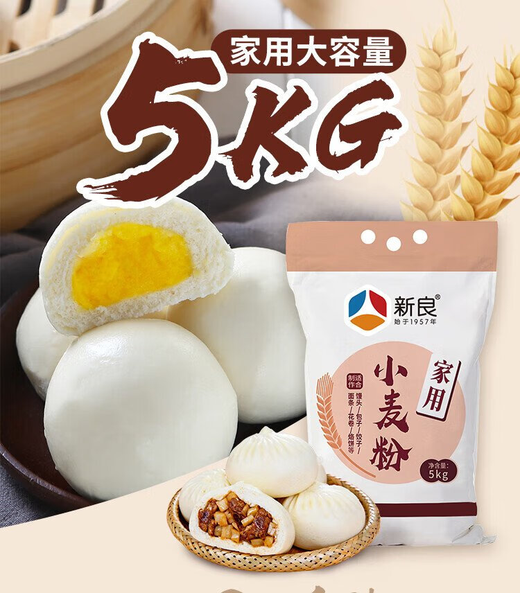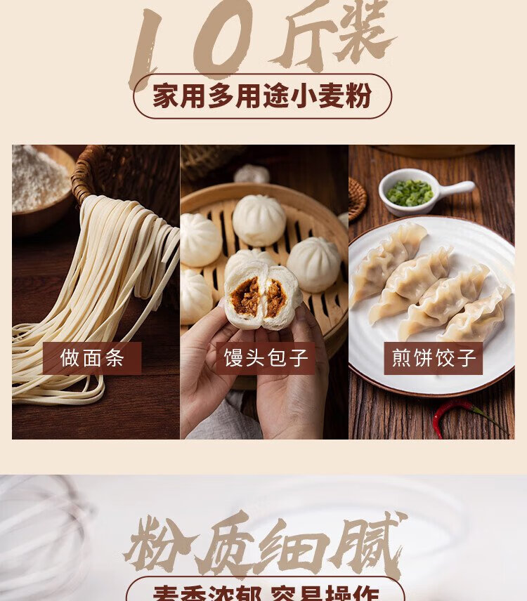 Xinliang household wheat flour, medium-gluten flour 10 pounds, wheat flour for noodles, buns, steamed buns and dumplings