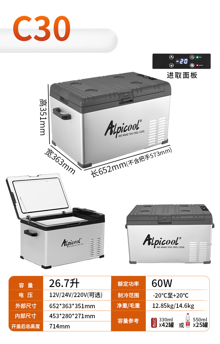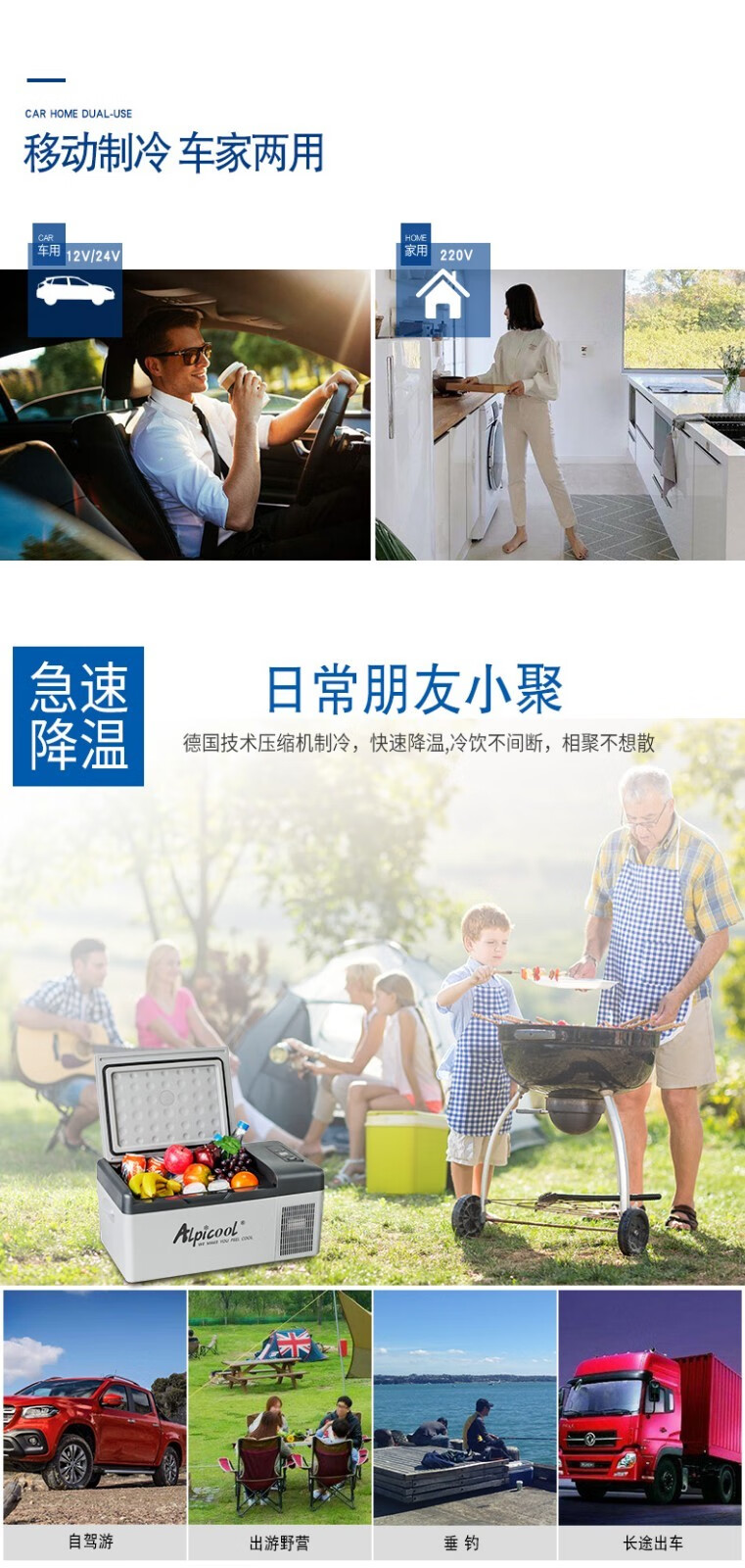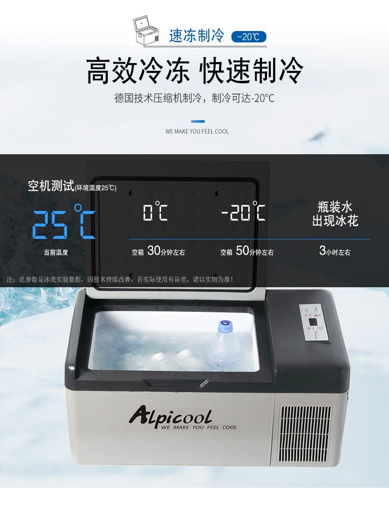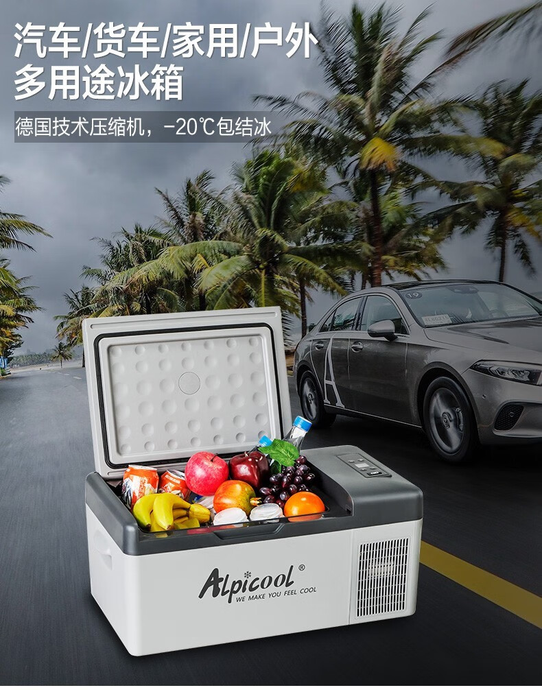 Alpicool car compressor refrigerator 12v car 24v truck 220V large capacity car home refrigeration freezing quick freezing digital display version C(x)15 car and home dual use 15.3L Detech compressor + can freeze
