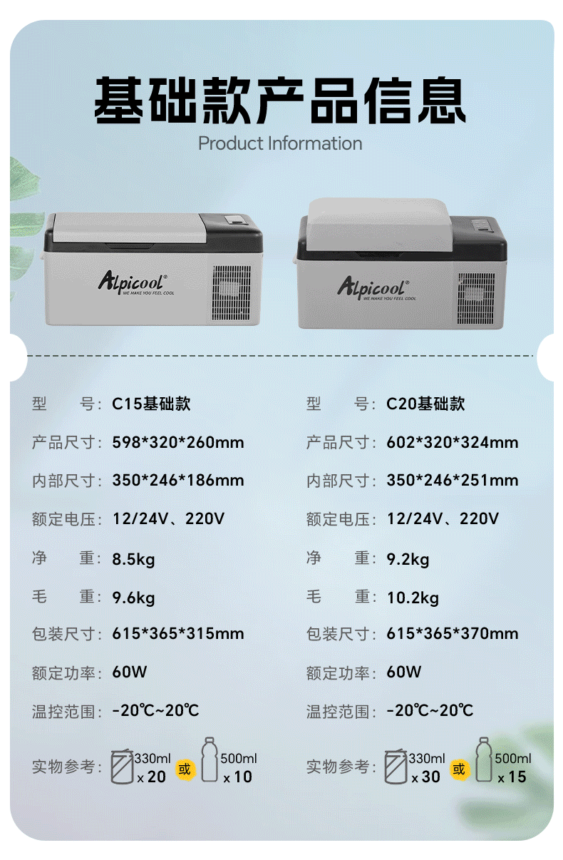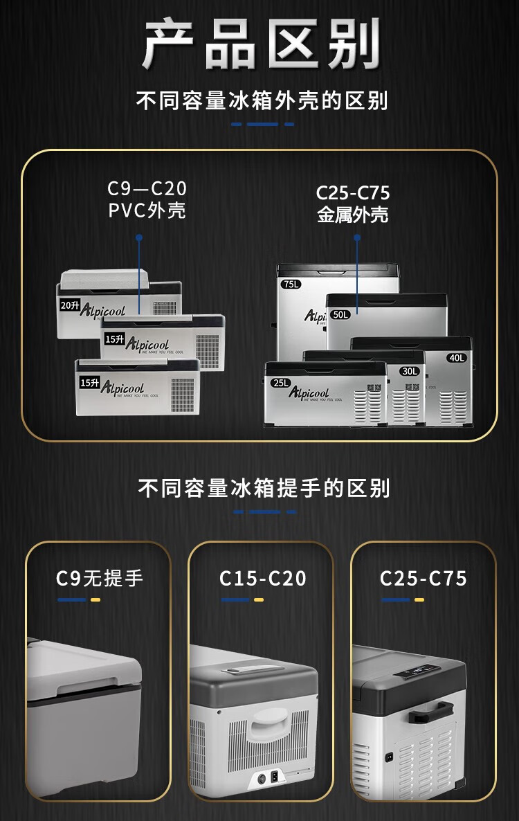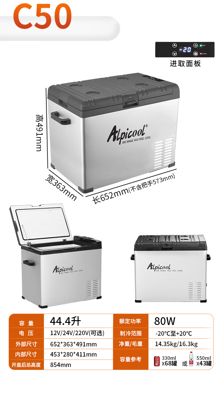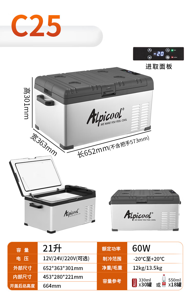Alpicool car compressor refrigerator 12v car 24v truck 220V large capacity car home refrigeration freezing quick freezing digital display version C(x)15 car and home dual use 15.3L Detech compressor + can freeze