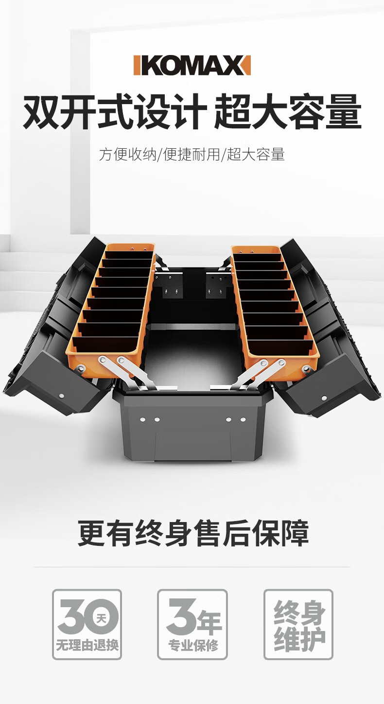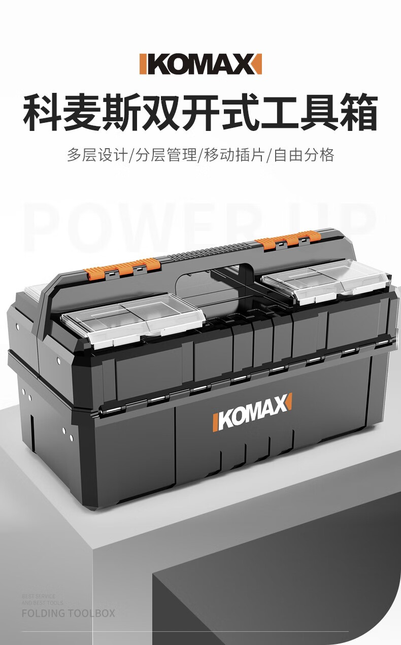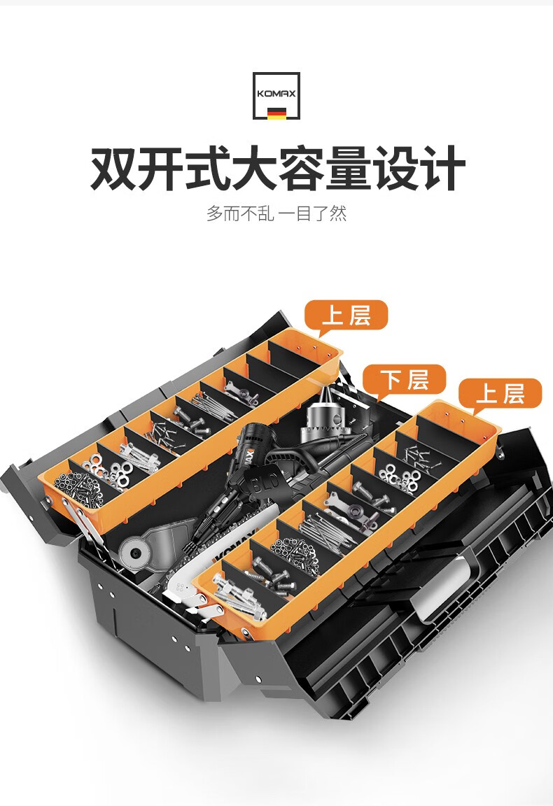 Komax multi-layer folding tool box double-open storage box large portable electrician storage box household hardware car empty box (enhanced version) double-open tool box