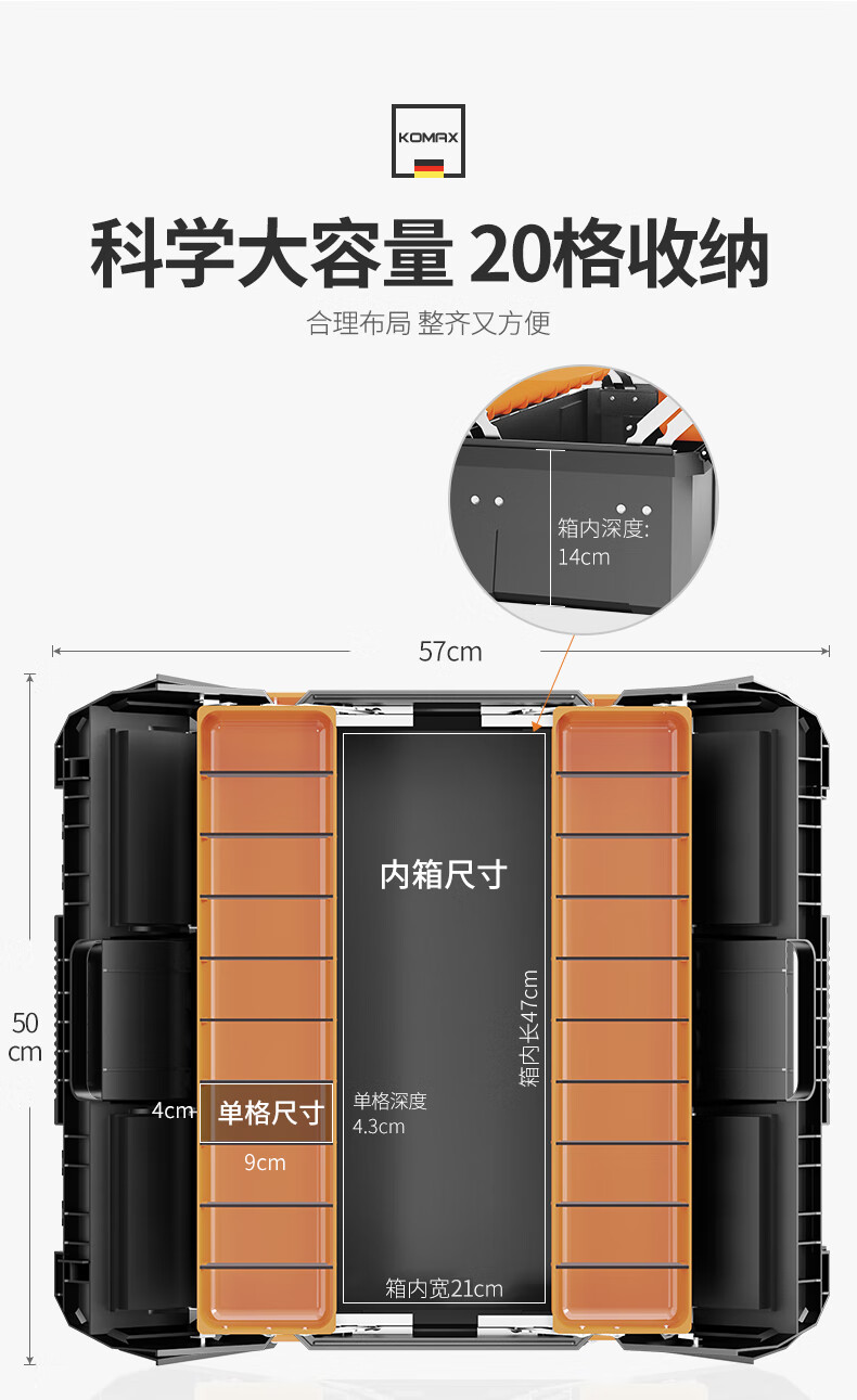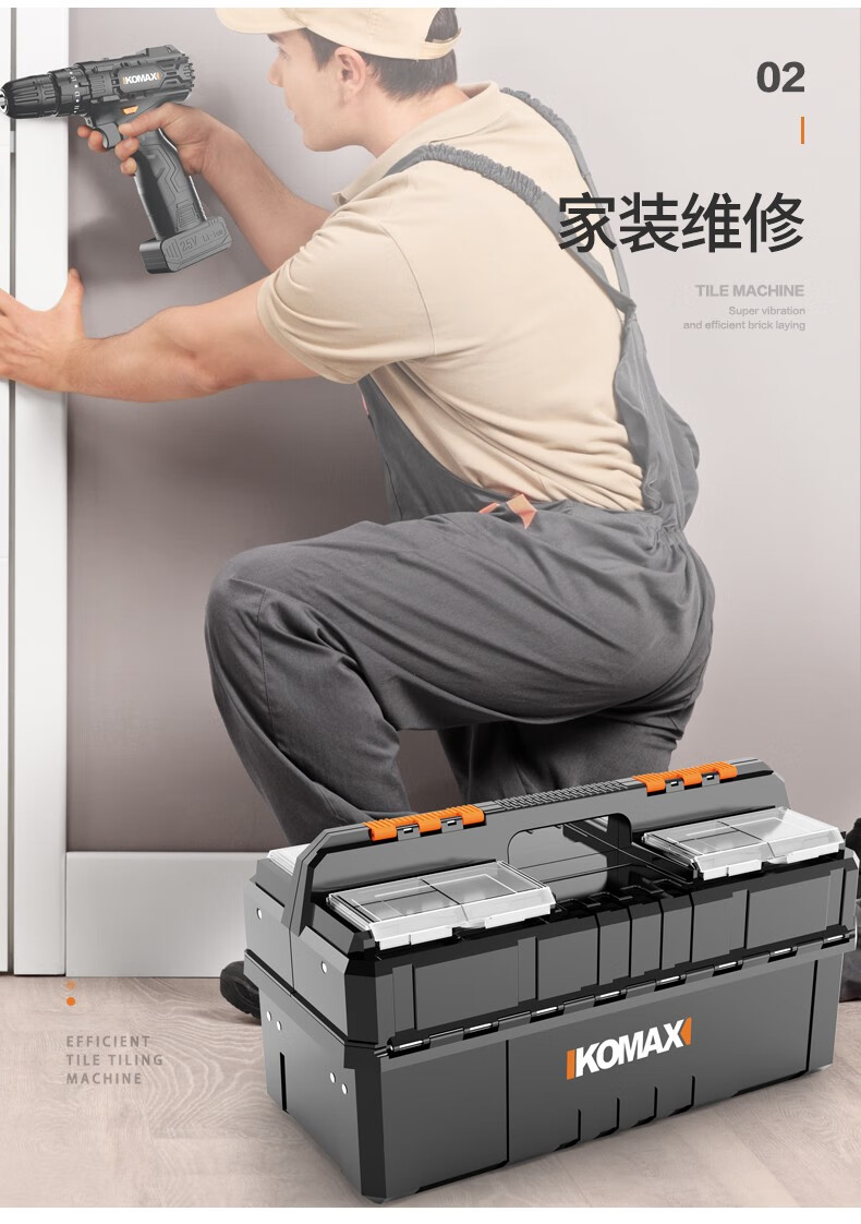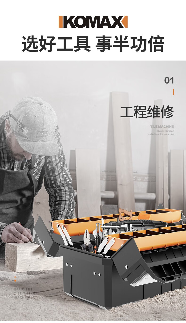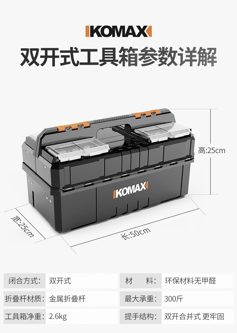 Komax multi-layer folding tool box double-open storage box large portable electrician storage box household hardware car empty box (enhanced version) double-open tool box