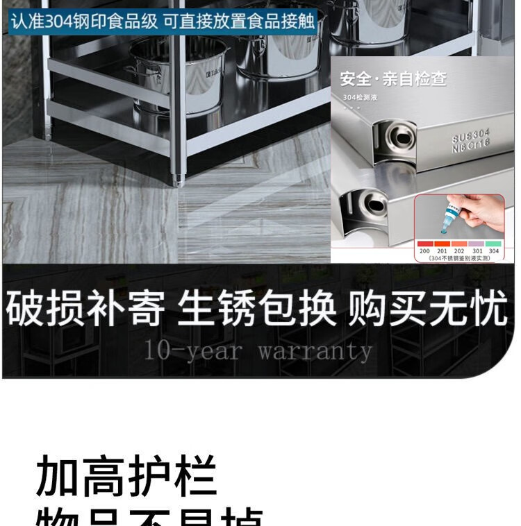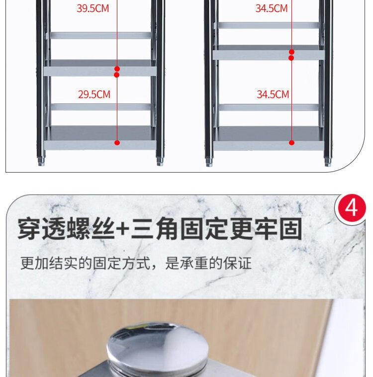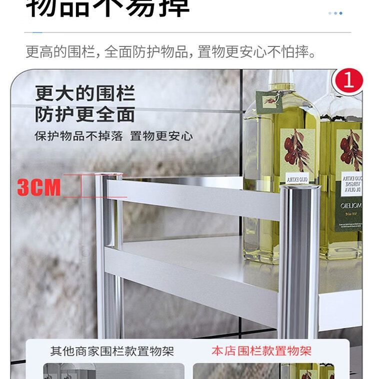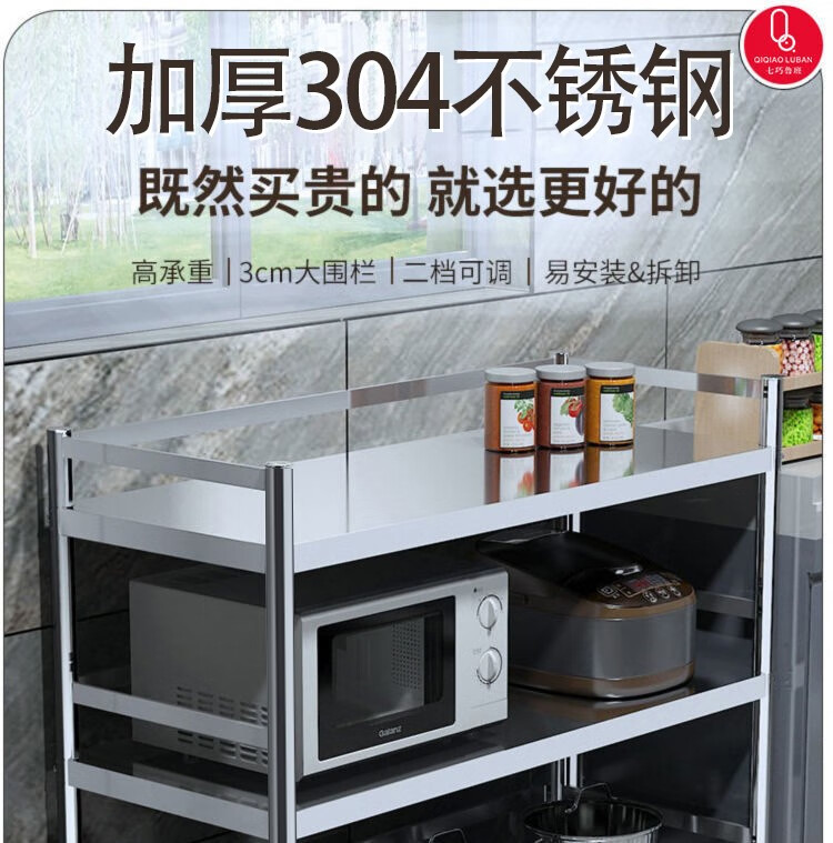 Qiqiao Luban 304 stainless steel storage rack kitchen microwave oven storage rack organizer home storage storage shelf 304 guardrail model length 80 width 30 height 100 three layers
