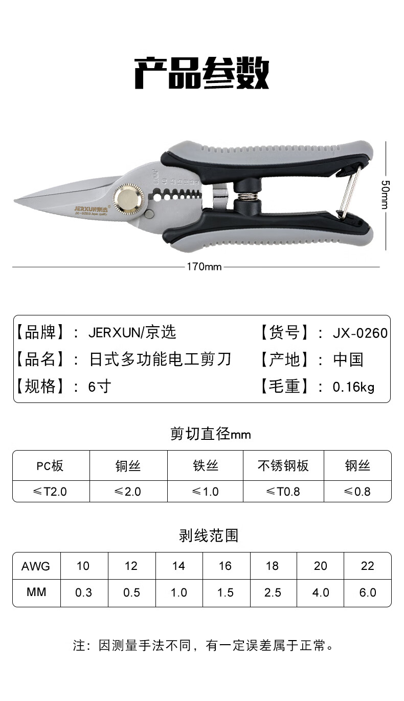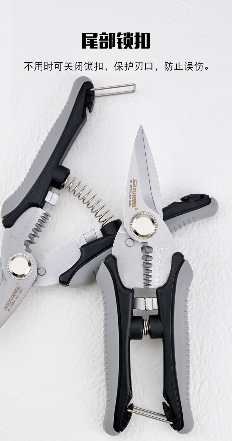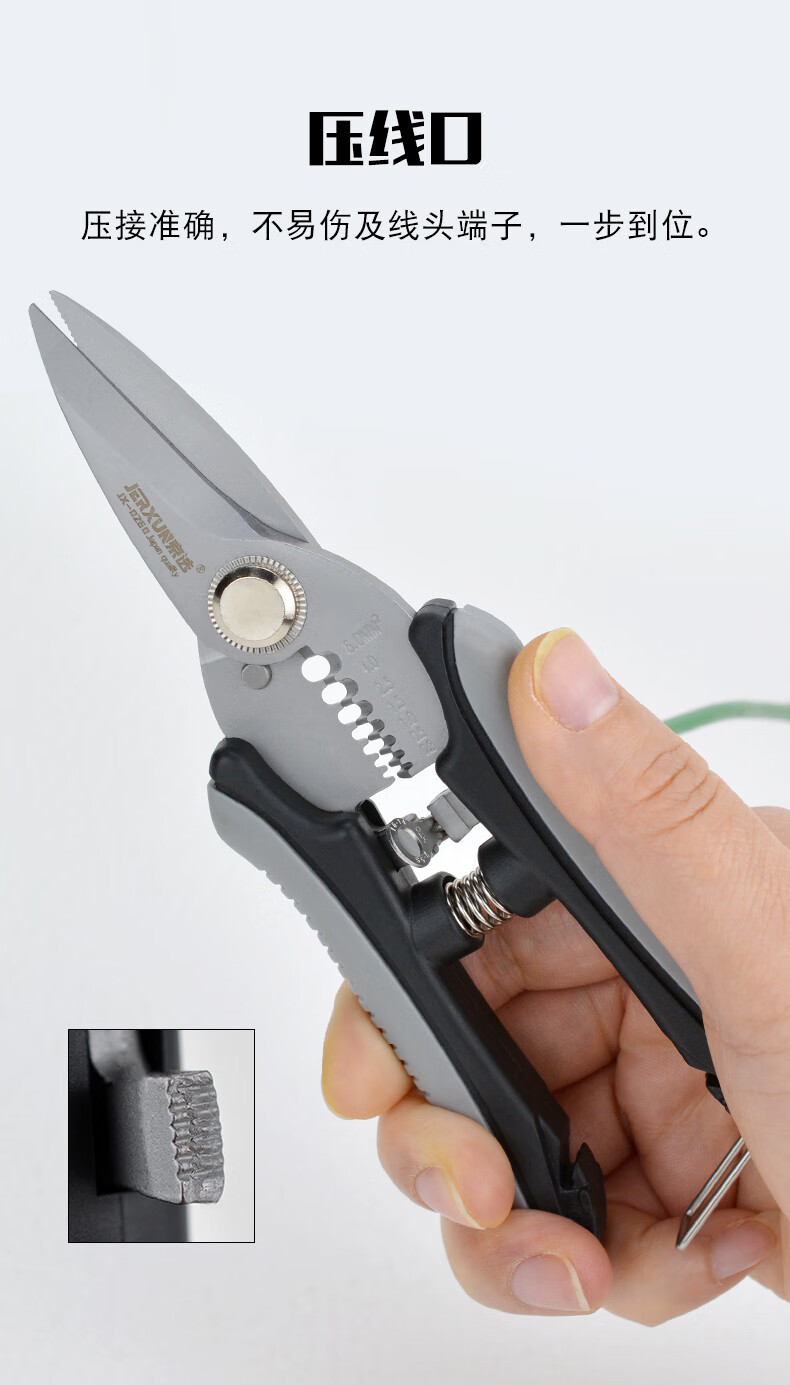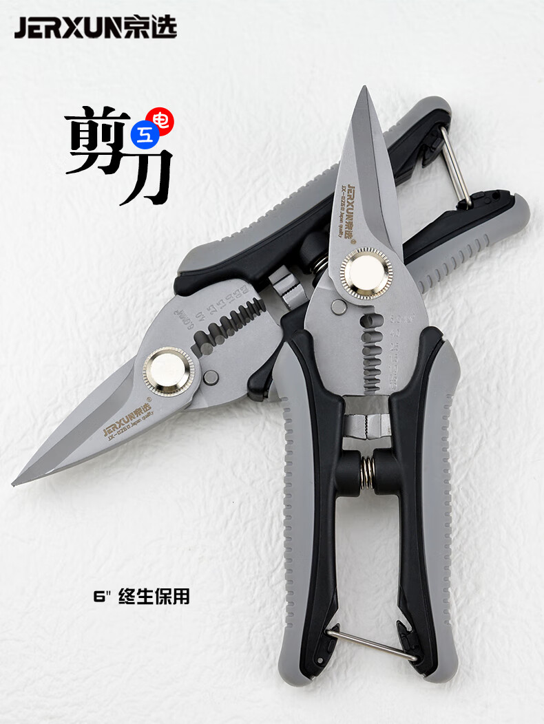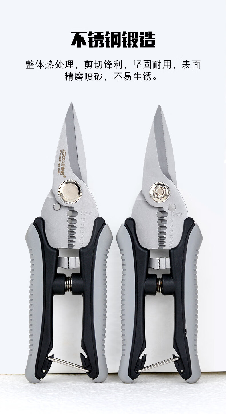 JERXUN electrician's scissors 6-inch stainless steel wire stripper multi-functional iron scissors wire trough cutter cable peeling pliers wire crimping pliers 6-inch electrician's scissors
