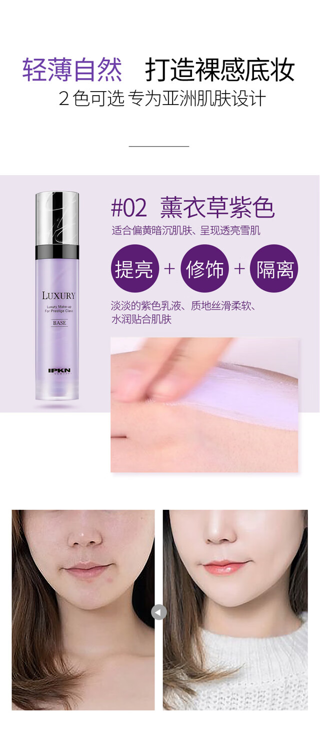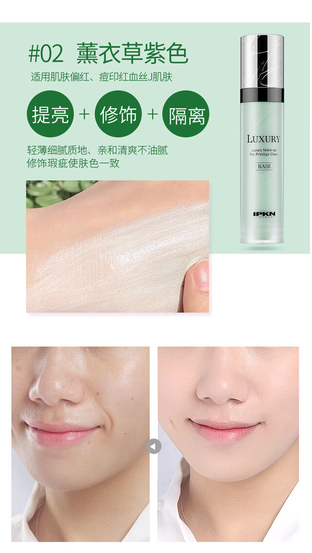 Yikeen Isolation Cream Repair Concealer Brightens Skin Invisible Pores Special Counter New Packaging 2# Purple Suitable for Dark Skin 45ml Capacity