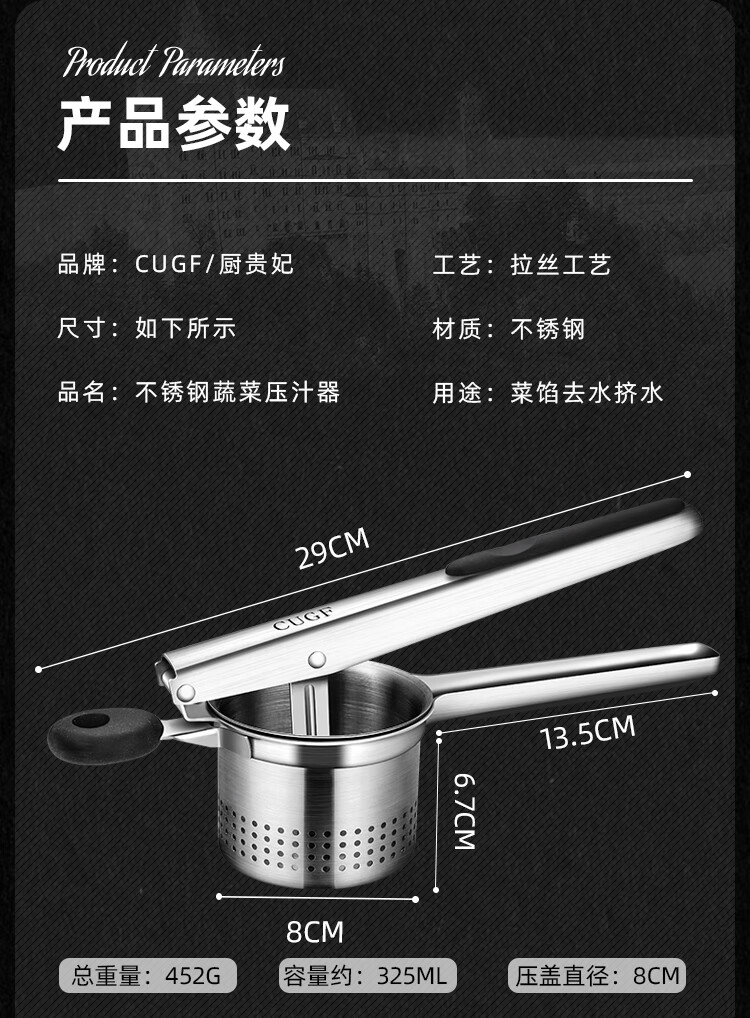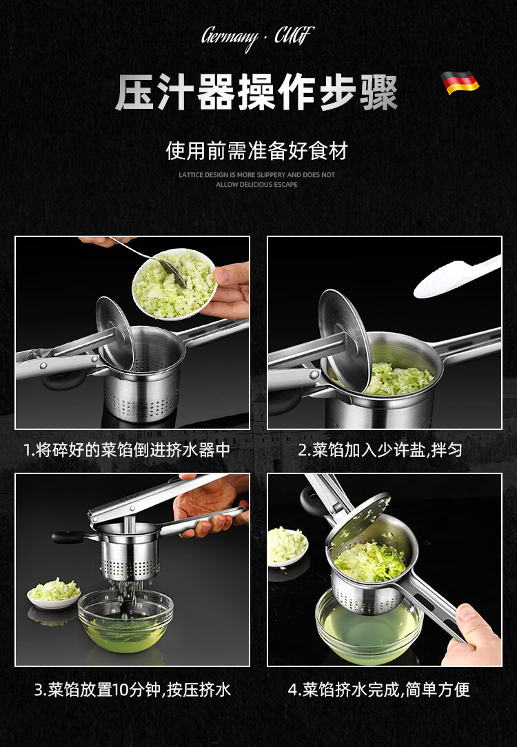 German household stainless steel water squeezer, vegetable stuffing, dumpling stuffing, vegetable squeezer, kitchen vegetable dehydrator, vegetable water squeezer (stainless steel handle) + small dumpling maker