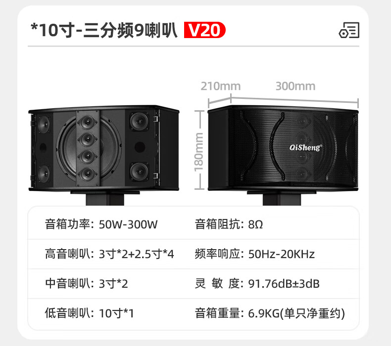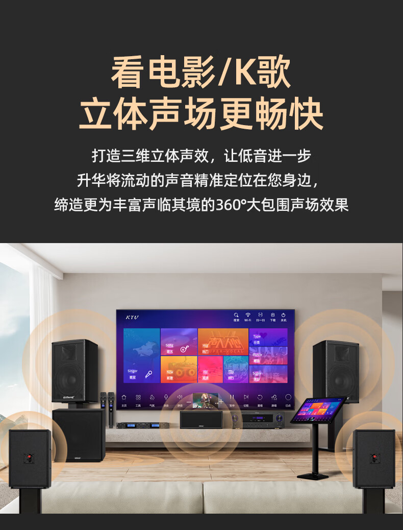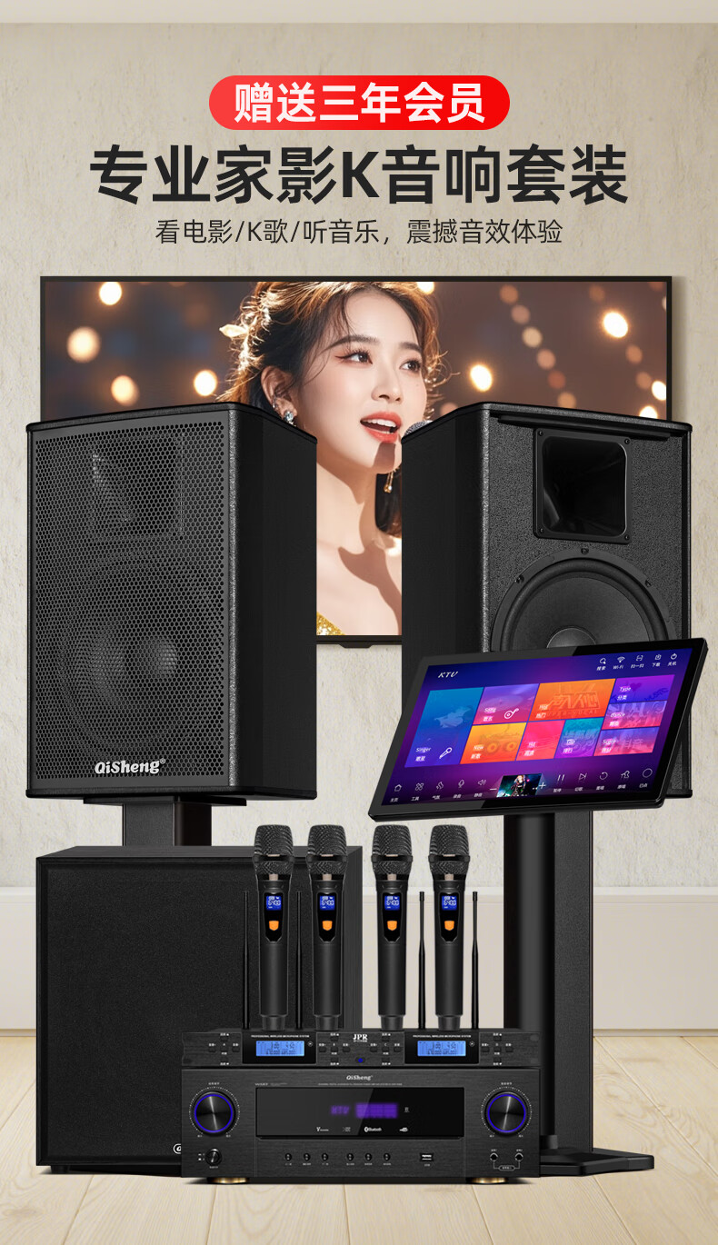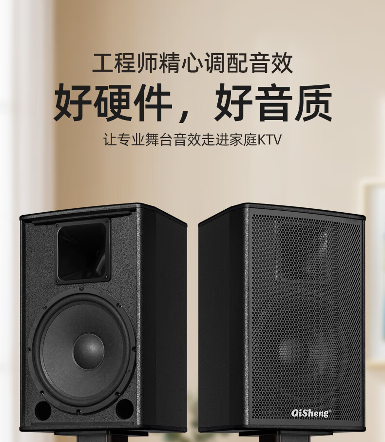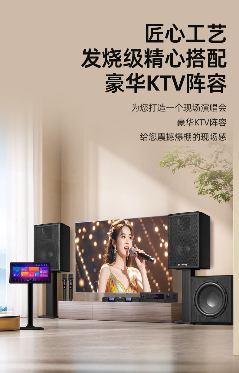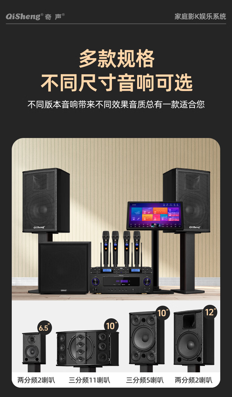 Qisheng family ktv audio combination set theater karaoke machine professional karaoke speaker singing complete set of equipment home stage conference living room TV karaoke all-in-one jukebox professional ten-inch card package vertical 7-piece set + cannon