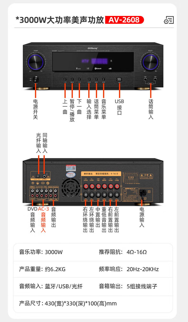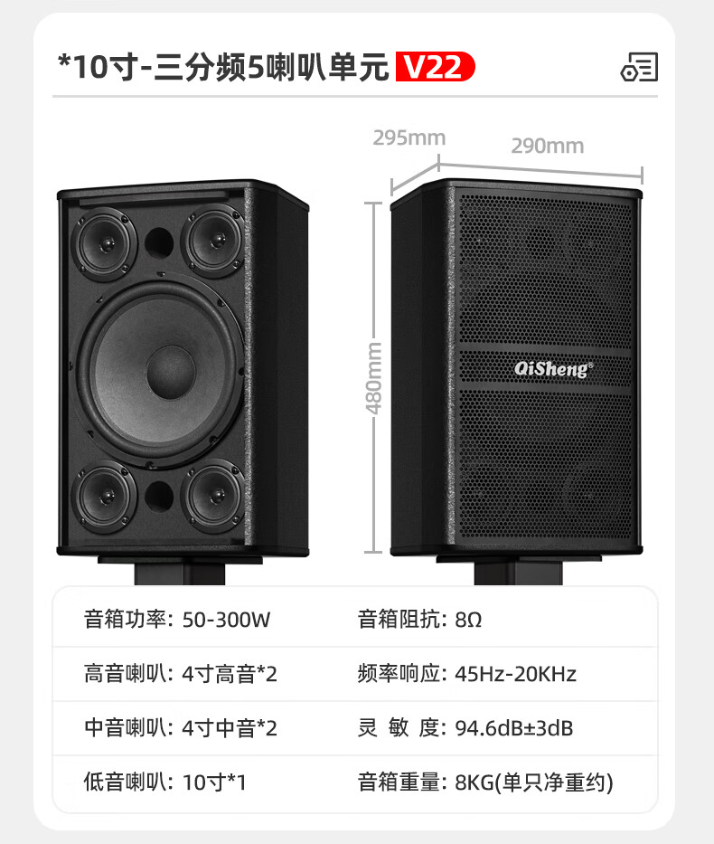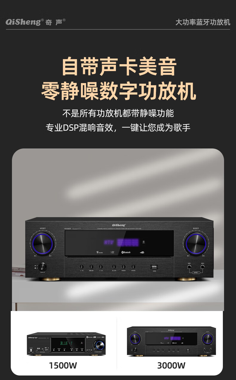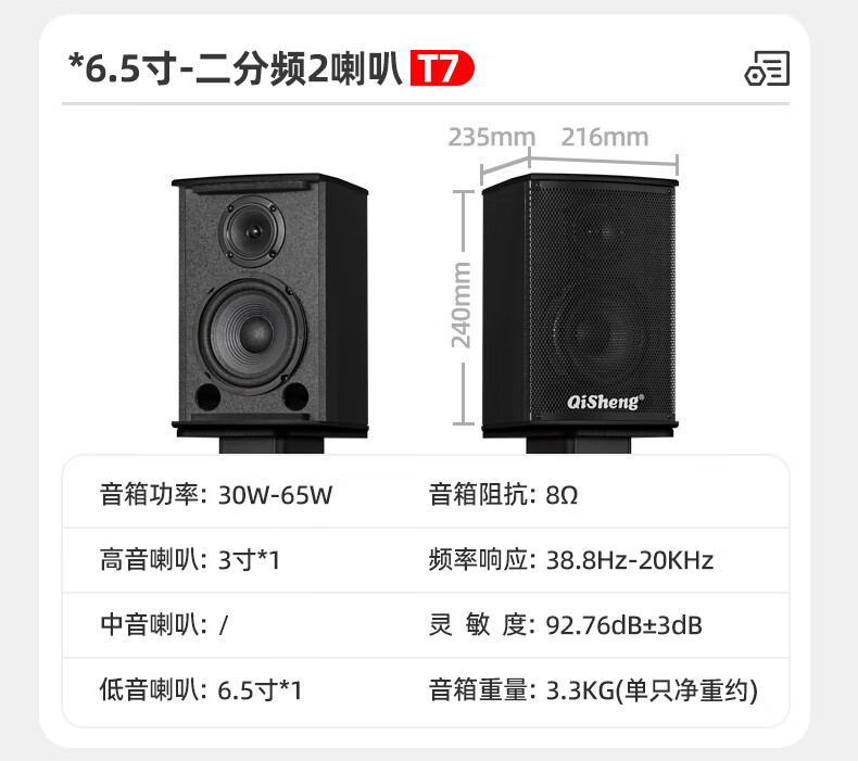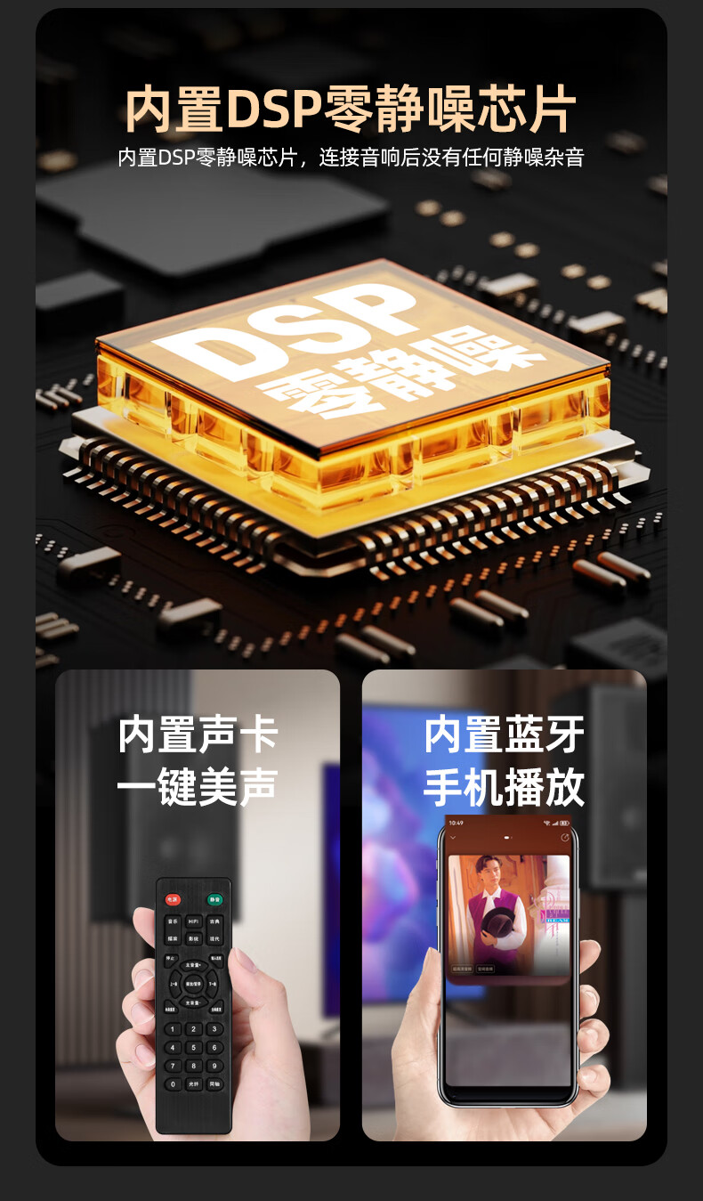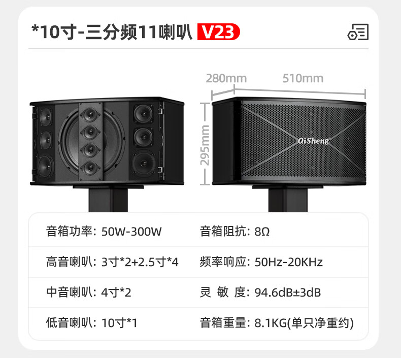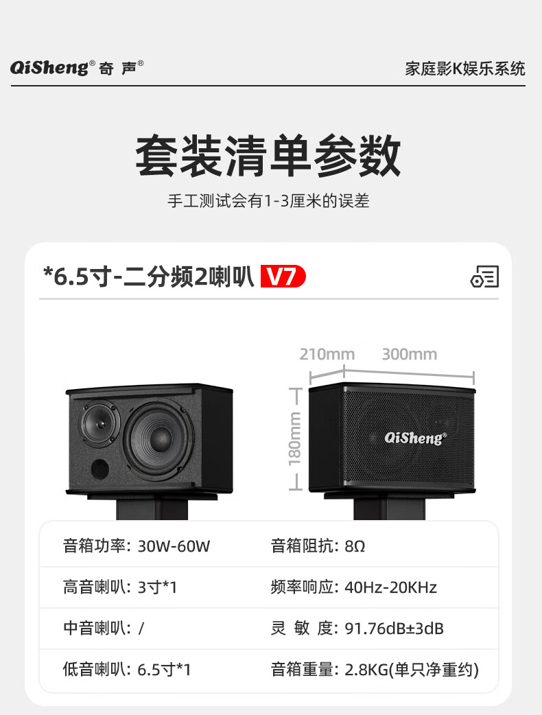 Qisheng family ktv audio combination set theater karaoke machine professional karaoke speaker singing complete set of equipment home stage conference living room TV karaoke all-in-one jukebox professional ten-inch card package vertical 7-piece set + cannon