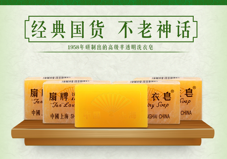 Fan brand laundry soap 150g pack, clean and transparent decontamination soap, gentle and non-hurting transparent soap, Shanghai soap, domestic product, 15 pieces (take 2 to get a soap box)