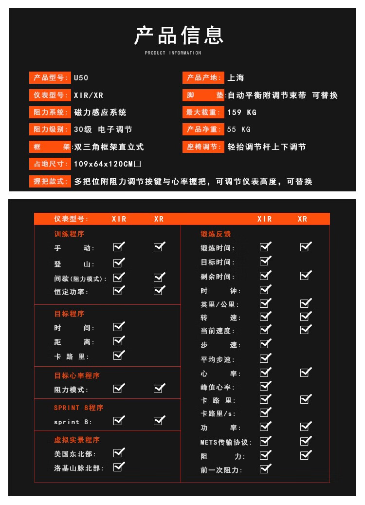 JOHNSON exercise bike U50 commercial gym upright exercise bike luxury high-end fitness equipment villa selection U50 XR blue screen version