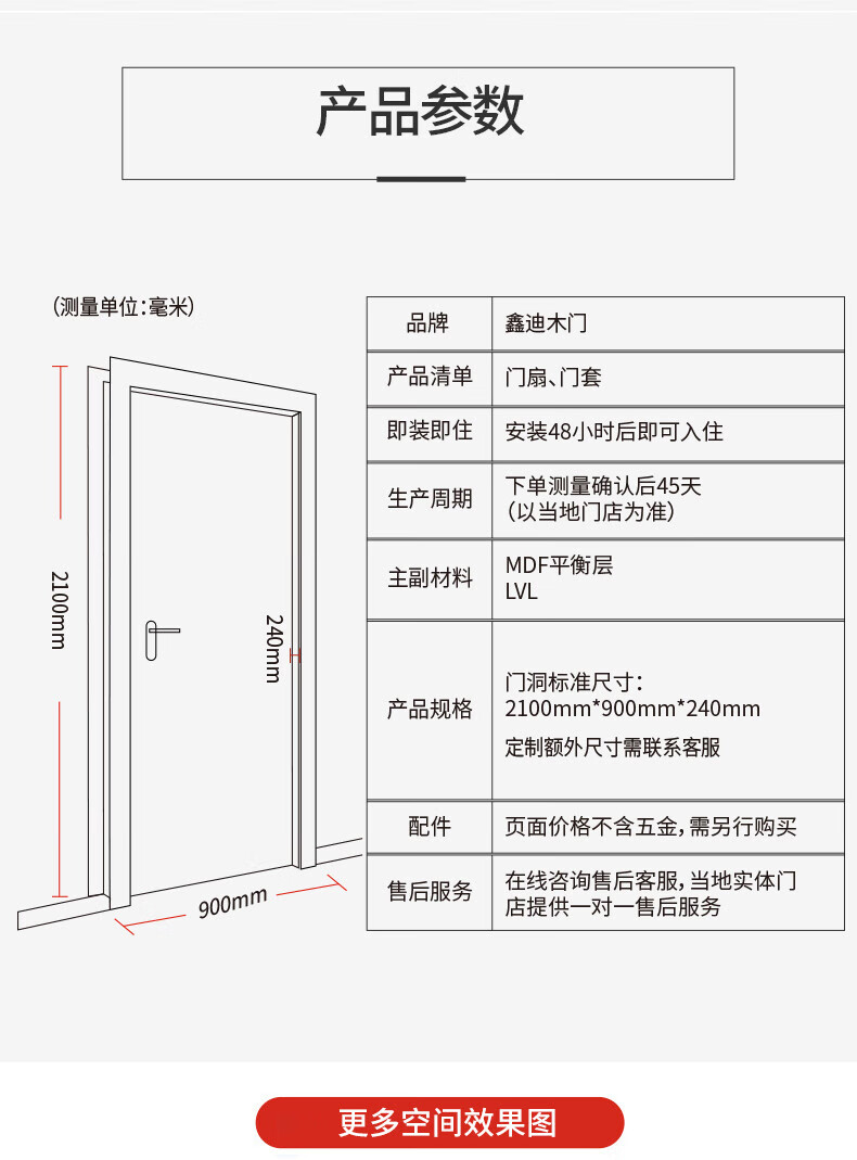 Xindi Wooden Door Paint-free Soundproof Simple Interior Door Solid Wood Composite Door Room Door Customized Bedroom Door XP-8015A Pure White