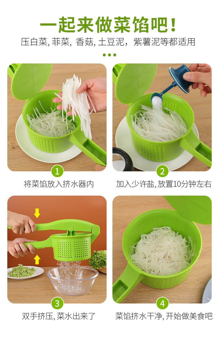 Necooks Dumpling and vegetable filling dehydration and water squeezing device, household squeezing and vegetable filling and water squeezing tool, labor-saving kitchen vegetable dehydration and dryer, extra-large PP thickened version