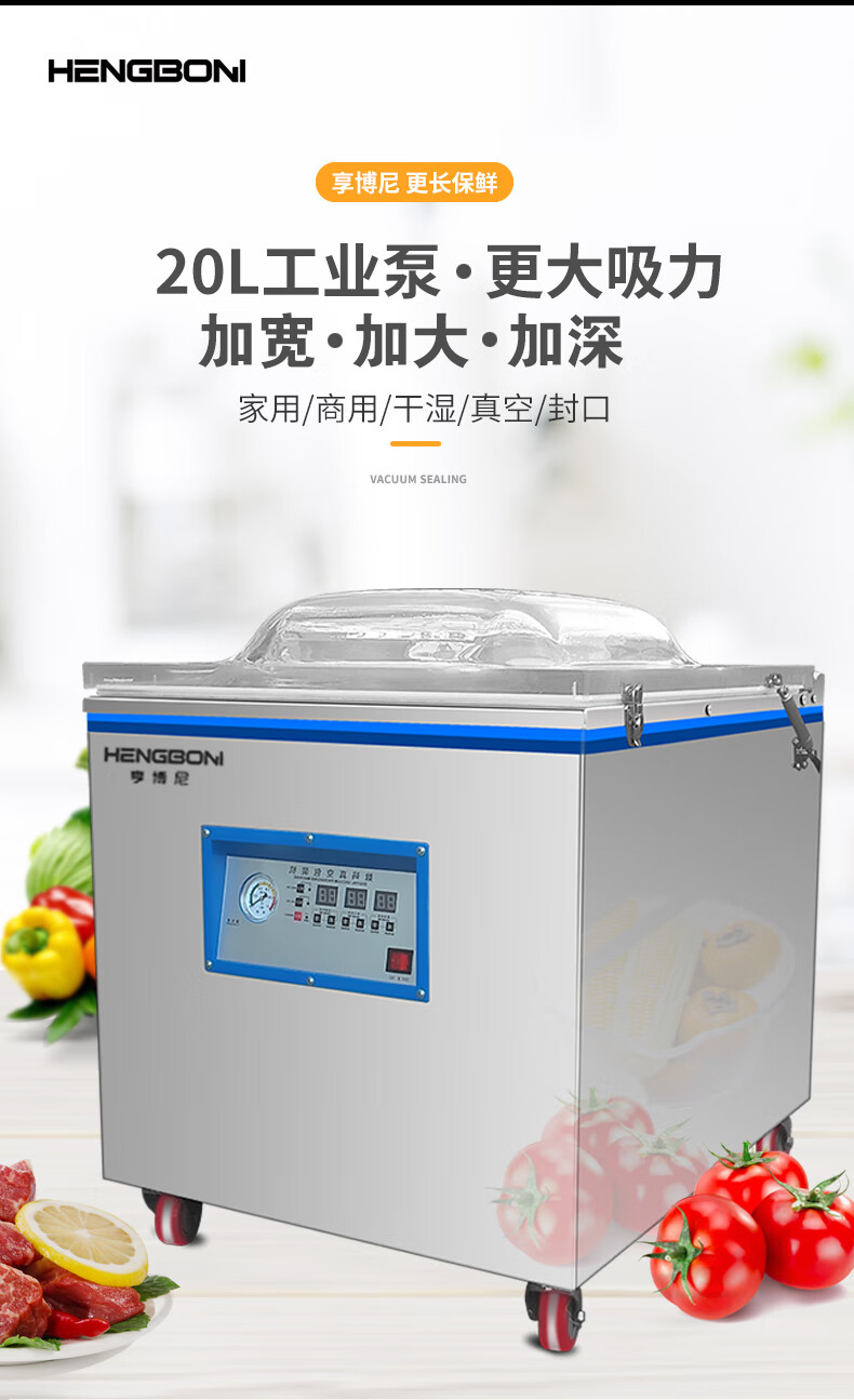 HENGBONI vacuum packaging machine, commercial dry and wet vacuum machine, plastic sealing machine, household vacuum sealing machine, automatic cooked whole mutton, beef, chicken, duck and goose vacuum H-6260 (dual 25L industrial pumps and double transformers)