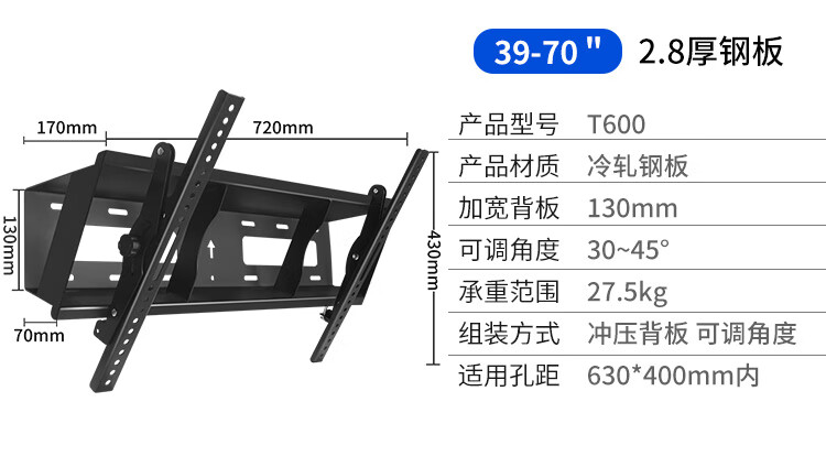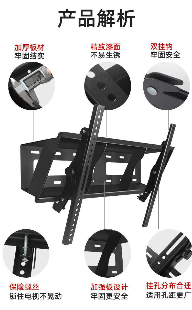 Sance (HILLPORT) 32-70-inch TV wall-mounted bracket with pitch angle 30-45 degrees, adjustable bracket, universal for Sony, Huawei and Hisense, suitable for 32-65 inches, 25.5KG load-bearing