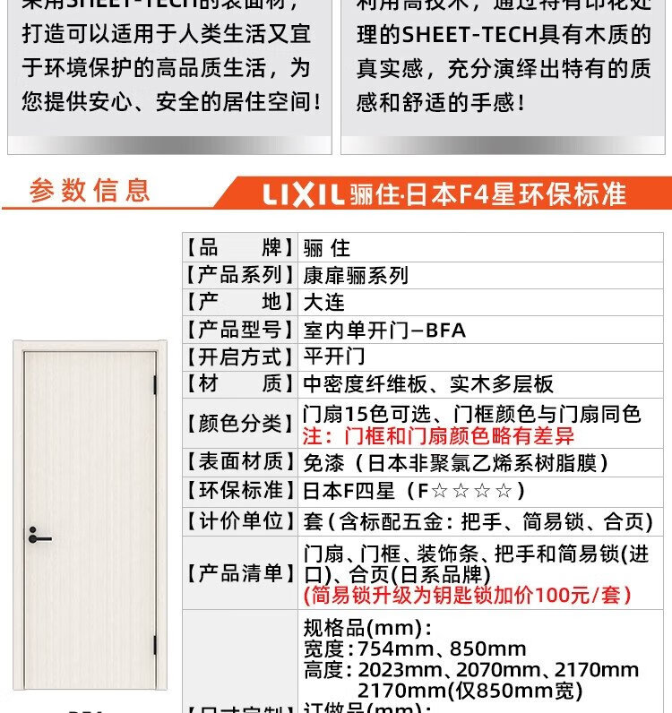 LIXIL Japanese quality wooden door bedroom door custom wooden door interior door single door Kangfei Li series BFA model WW pure white set
