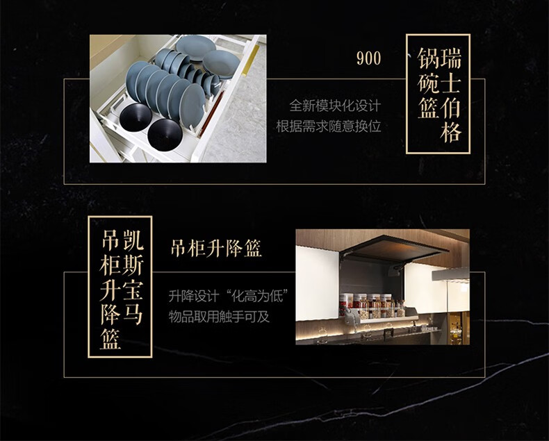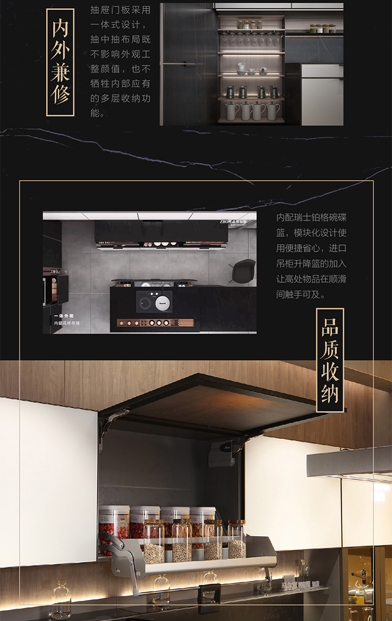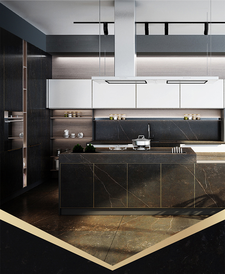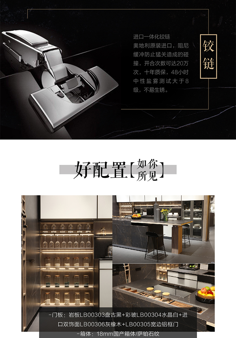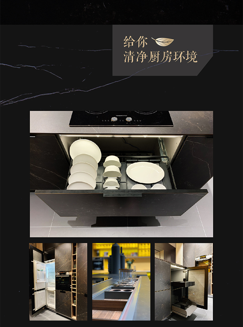 Zhibang Cabinets Kitchen Cabinets Customized Overall Cabinet Decoration High-end Luxurious Slate Colored Glass Kitchen Lift Bar Malmo 3.6m Countertop + 3.6m Floor Cabinet + 1.5m Wall Cabinet
