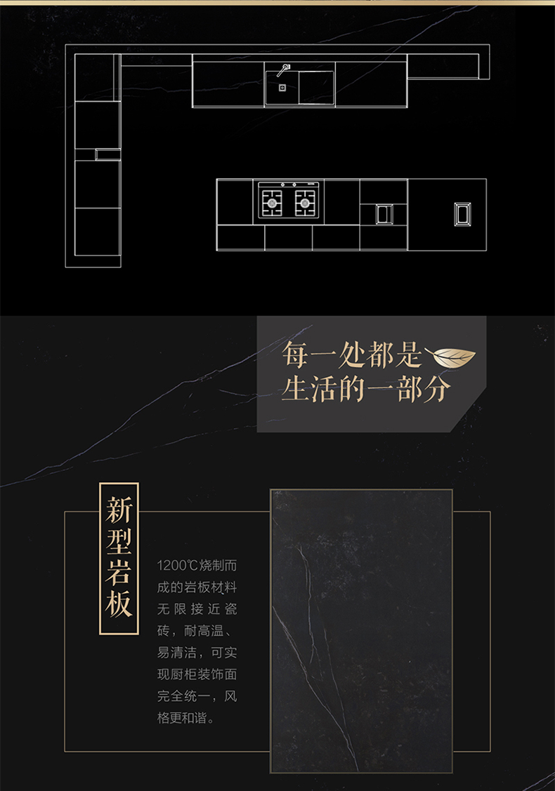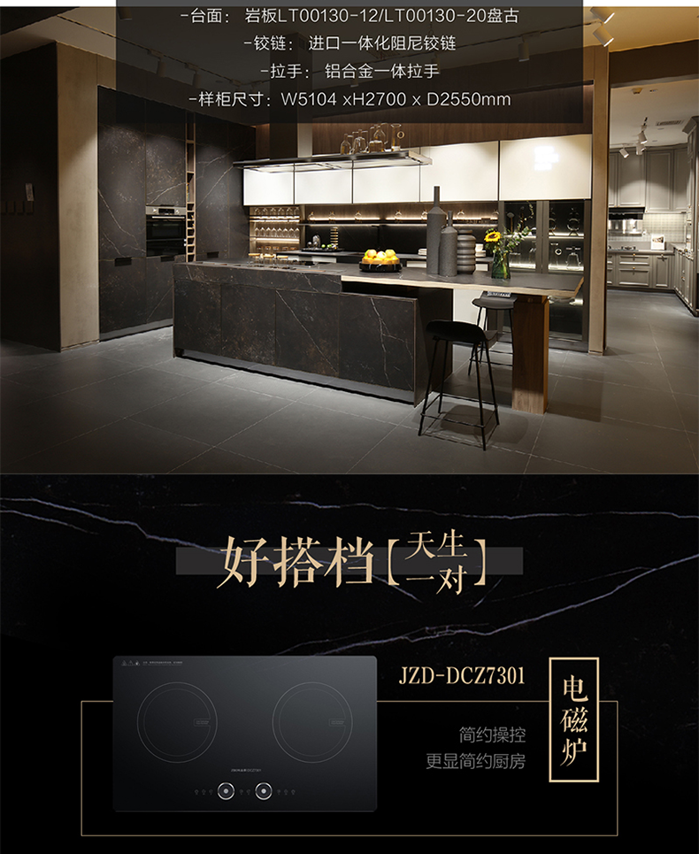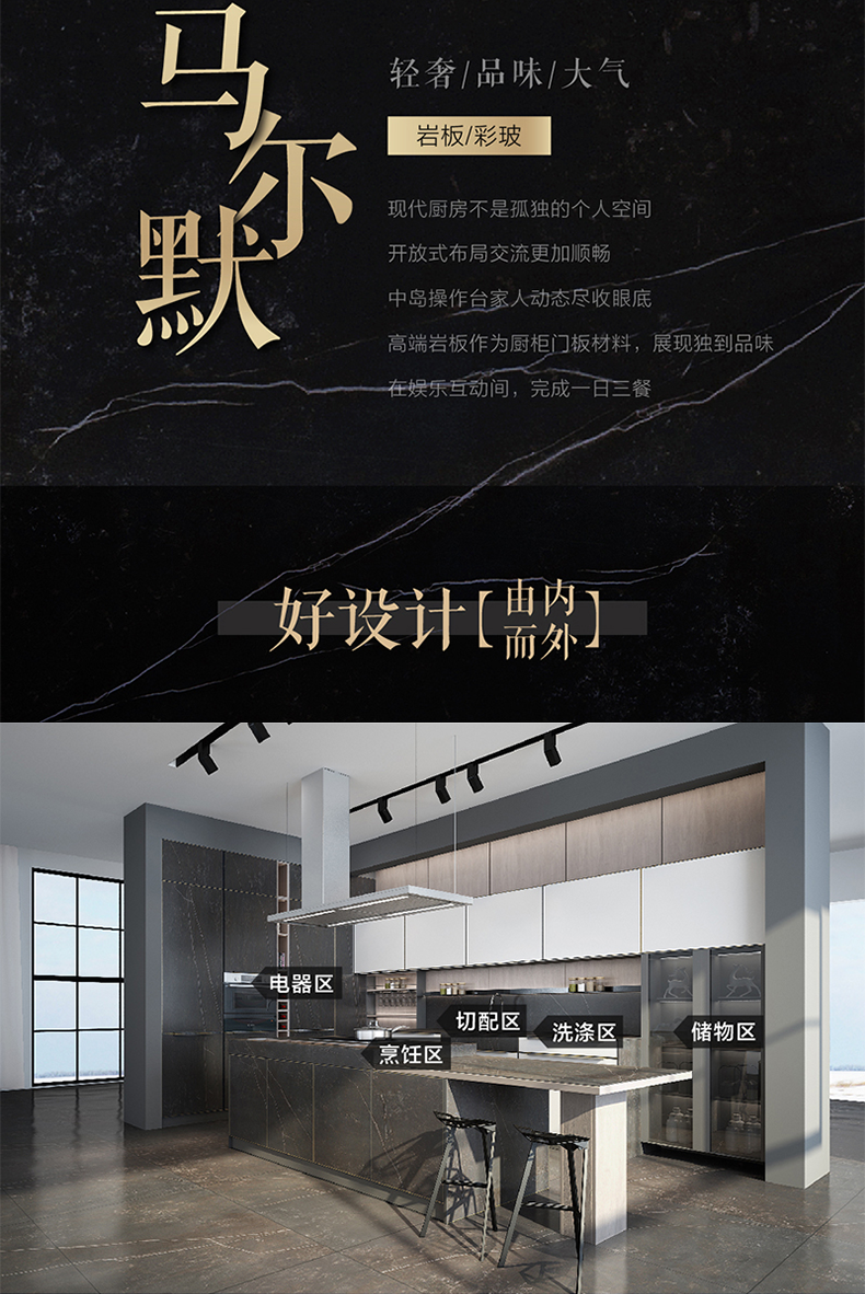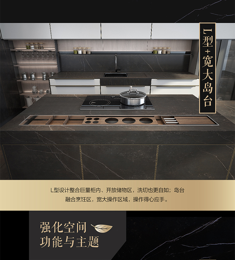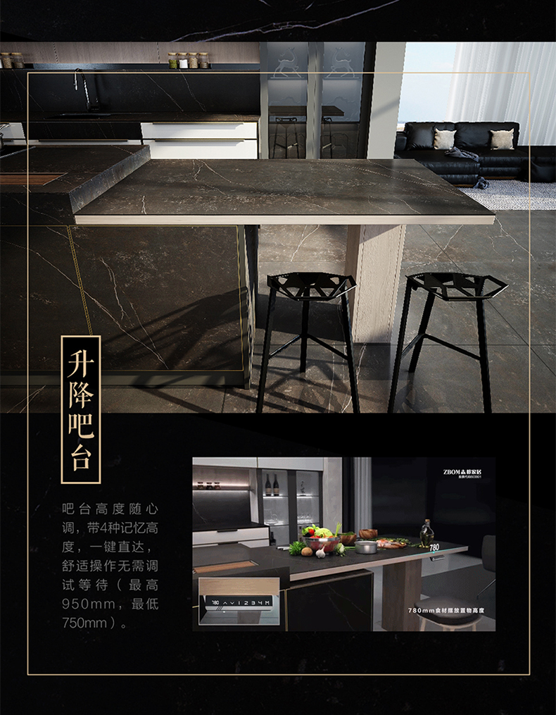 Zhibang Cabinets Kitchen Cabinets Customized Overall Cabinet Decoration High-end Luxurious Slate Colored Glass Kitchen Lift Bar Malmo 3.6m Countertop + 3.6m Floor Cabinet + 1.5m Wall Cabinet