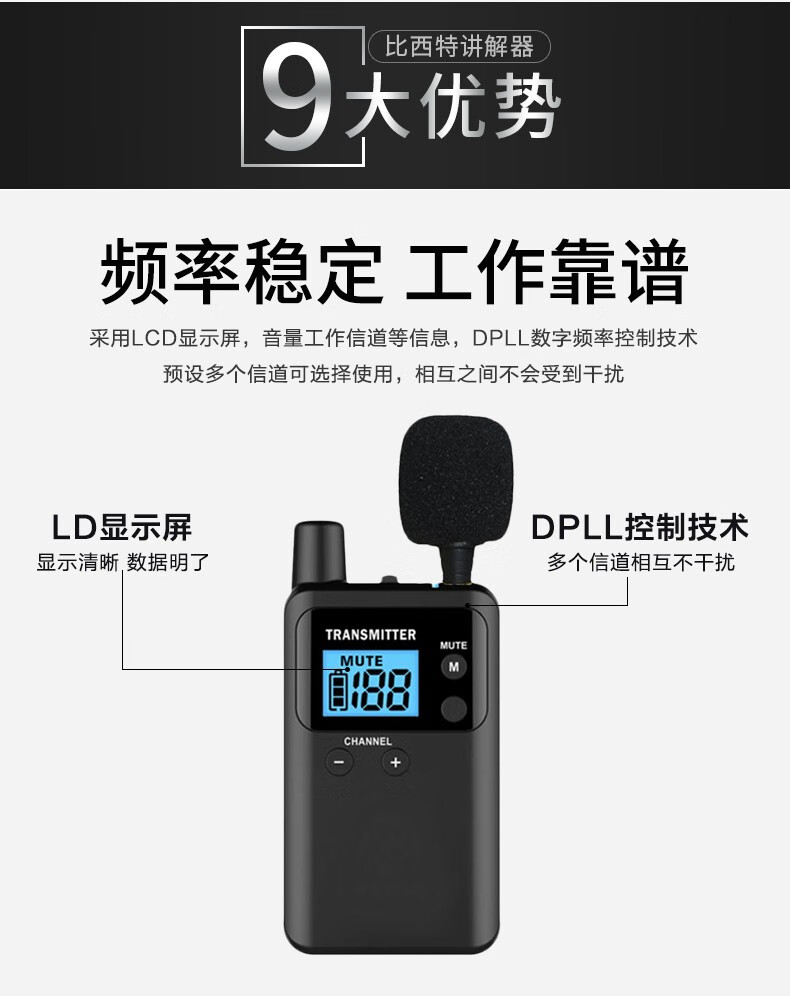 Bixit 811RS wireless commentator, administrative reception, one-to-many commentator, simultaneous interpretation headset, one-to-many headset tour guide, wireless commentator, 15-piece set (1 lecture + 15 receivers + 10-bit charger, 2 pcs + storage box)
