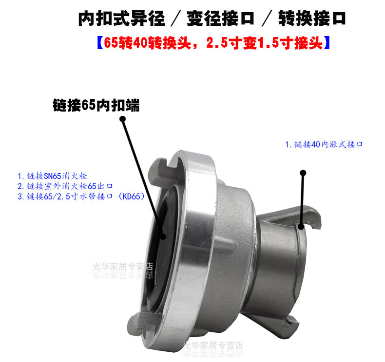 Forest fire interface 80/65/50 inner snap 2.5 inch 40 inner expansion reducing interface 65 reducing 1.5 inch conversion head inner snap 65 to 40 inner expansion interface * 1