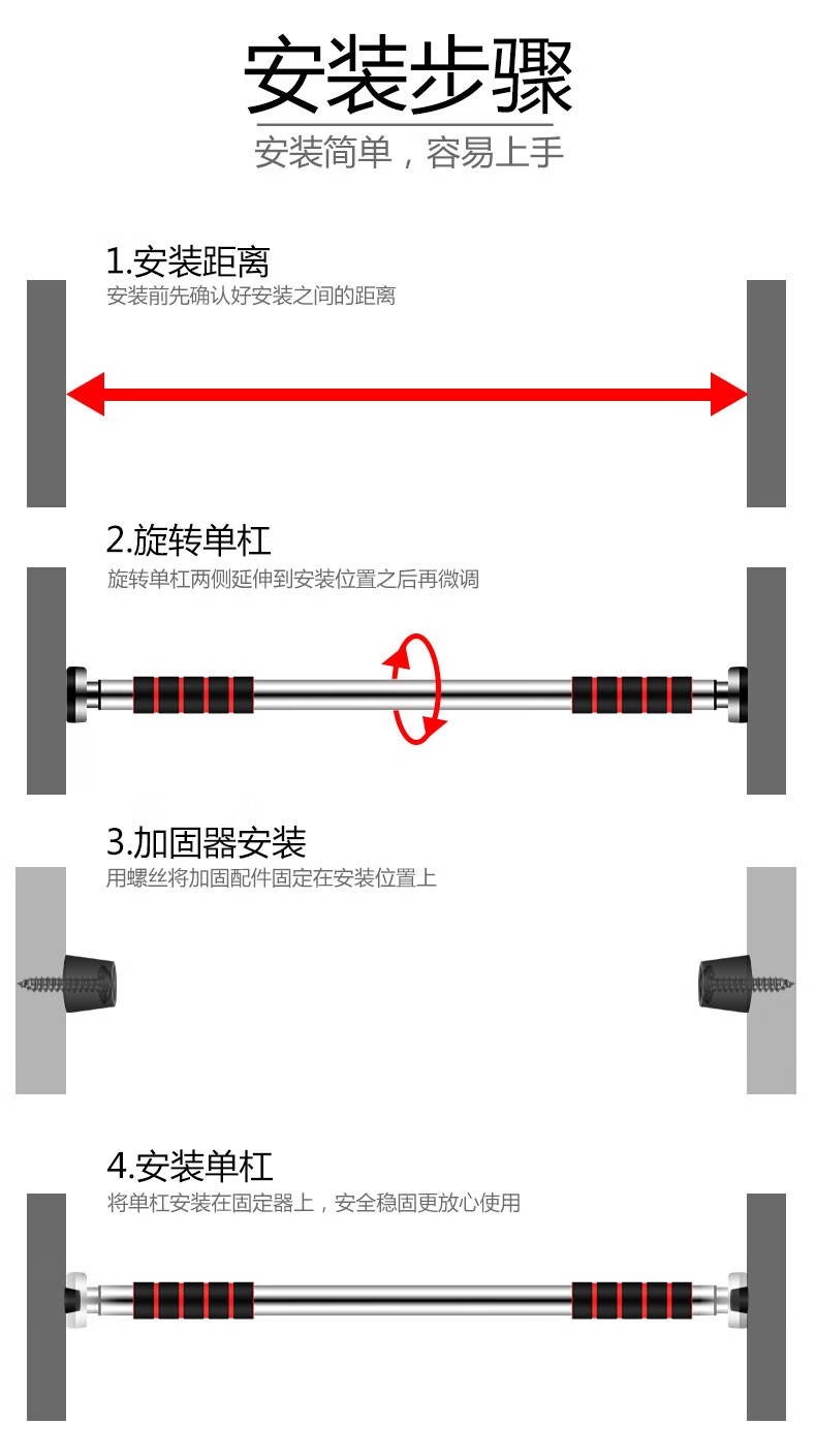 Manhua Sports household horizontal bar pull-up device household multi-functional indoor door horizontal bar pull-up device home punch-free training door horizontal bar 82-130cm door horizontal bar 82-130cm