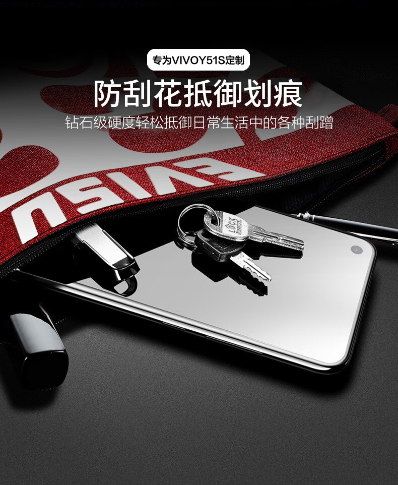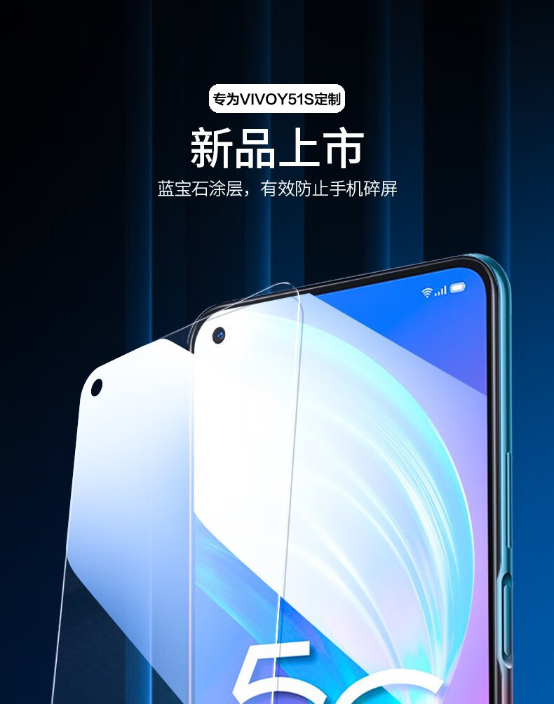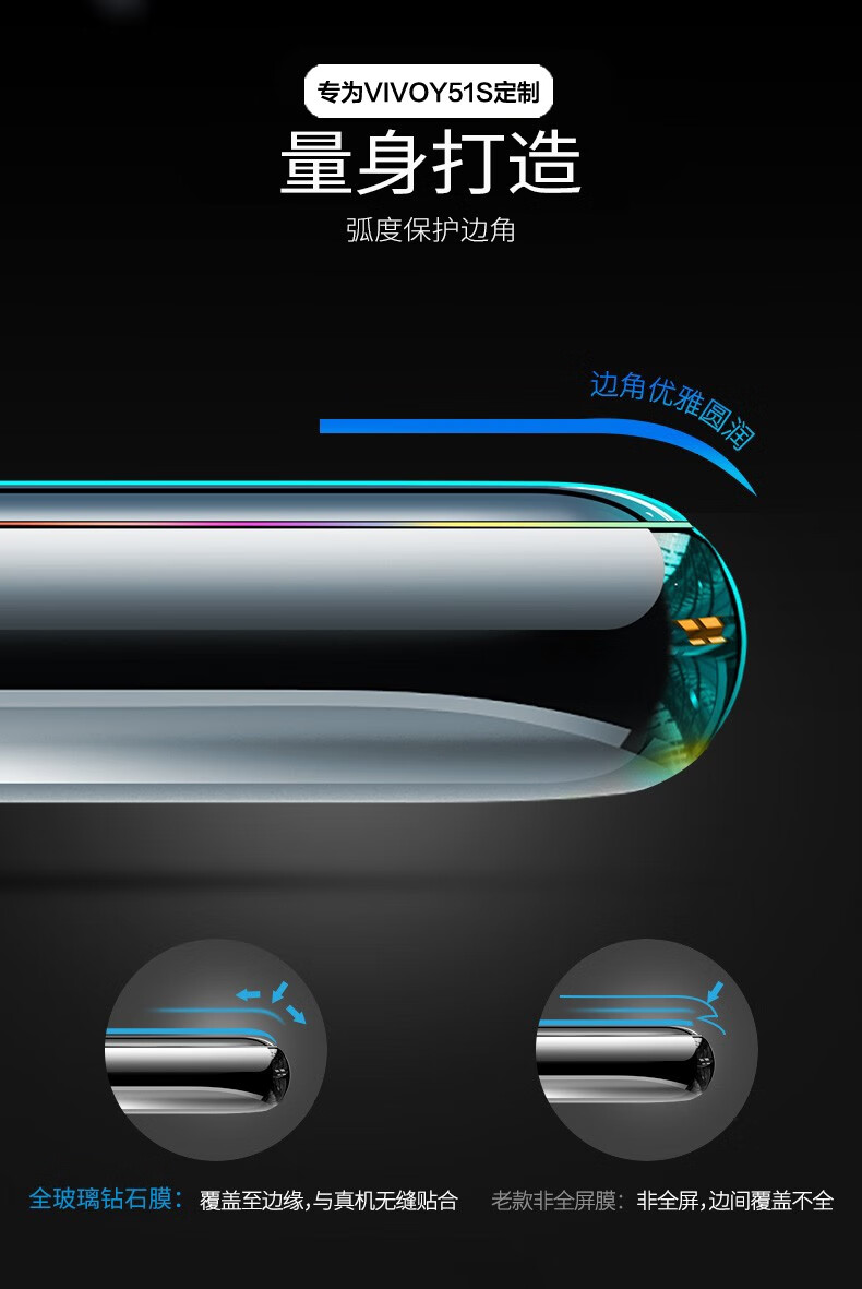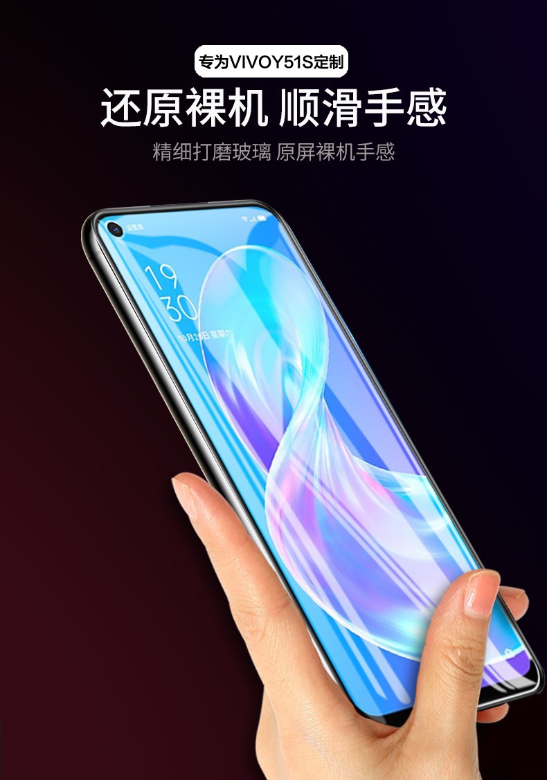 YJING vivo Y51s tempered film blue light full screen 5G mobile phone HD protective film suitable for vivoy51s anti-blue light transparent front film (2 pieces) + carbon fiber back cover soft film