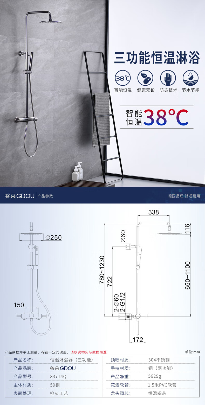 Guduo GDOU bathroom smart constant temperature shower shower set shower room roof spray shower head copper faucet 83714Q