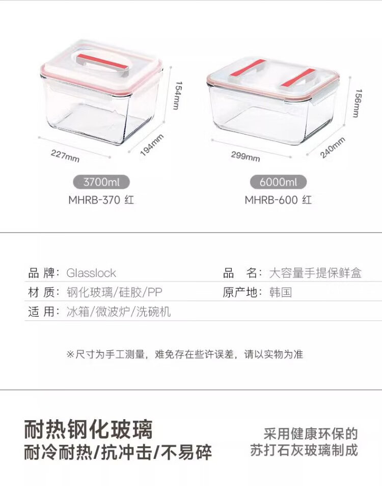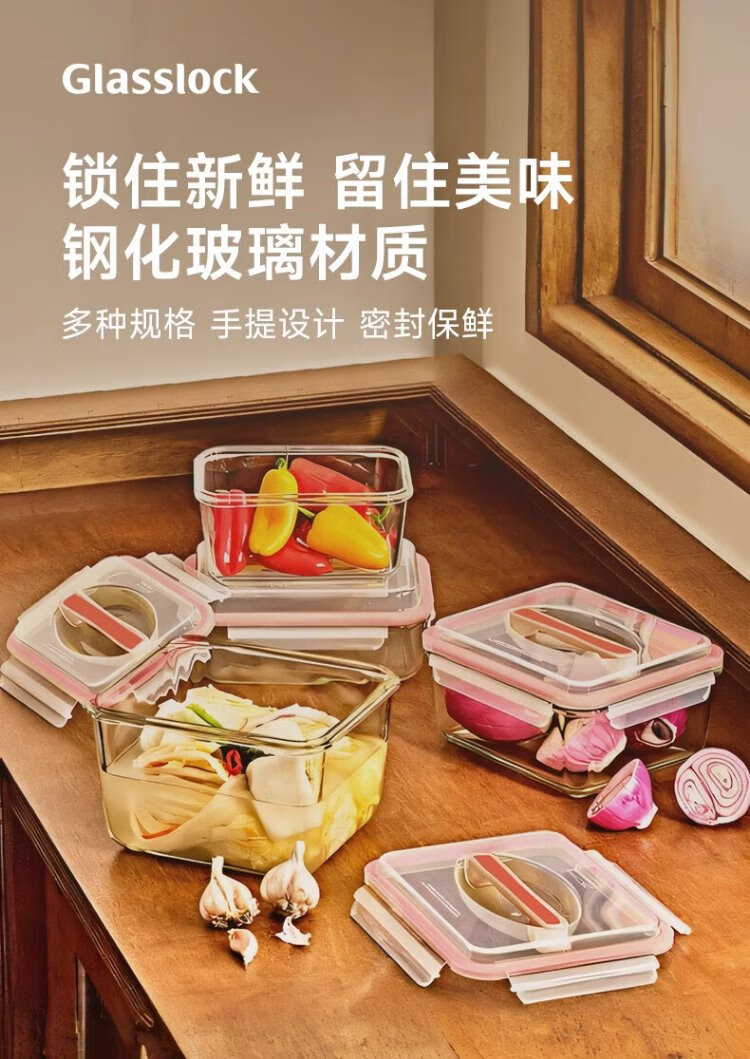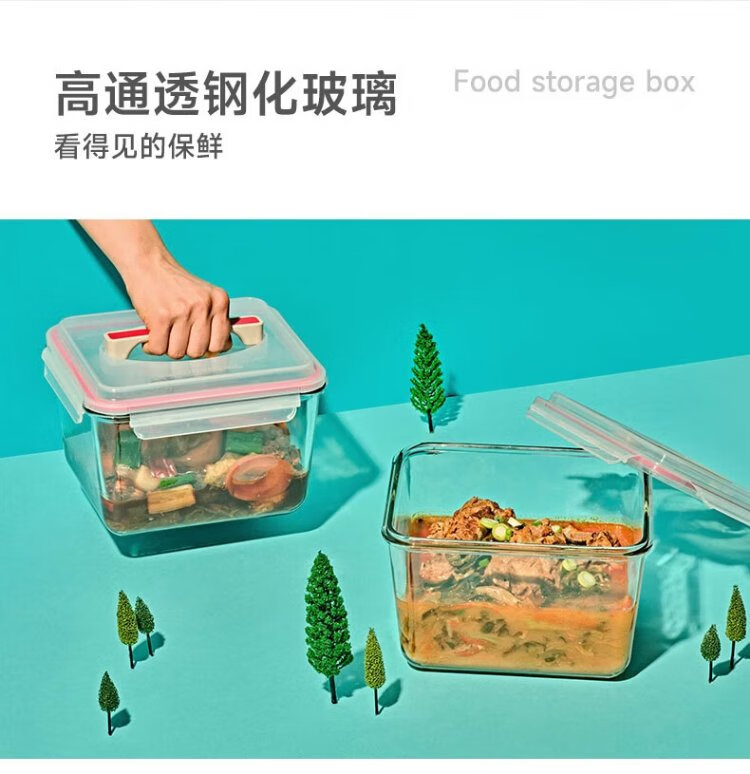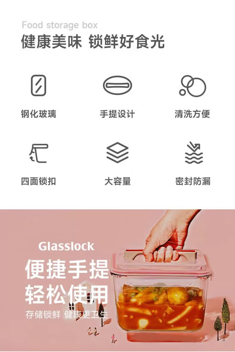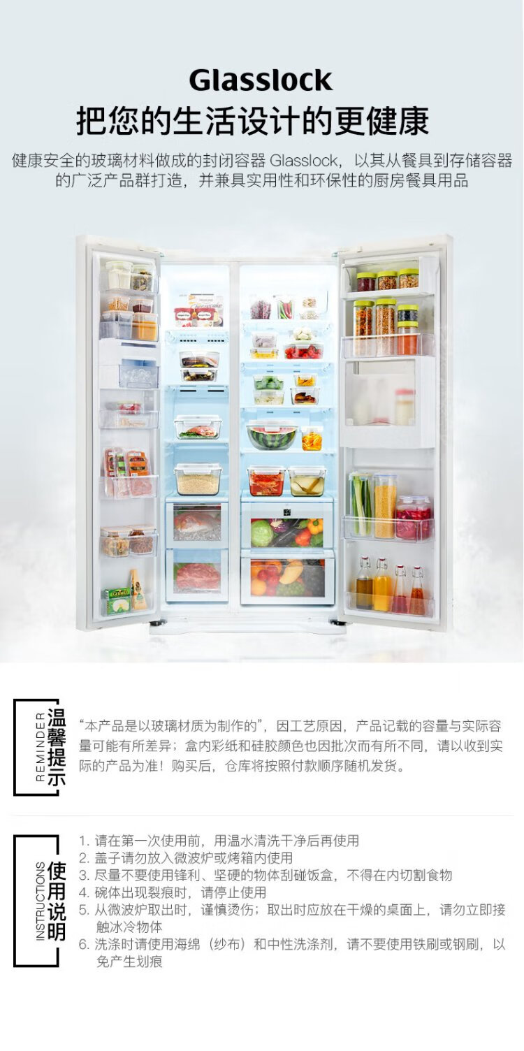 GLASSLOCK imported tempered glass portable large-capacity refrigerator refrigerated storage box sealed and moisture-proof 2500ml